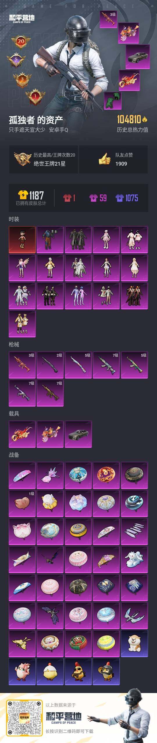 - PX_2102963- 安卓手Q-0王牌印记-1粉装-3特效枪-2载具-36718热力值-66套装-108枪皮-0卓越印记-0传奇印记 【1粉装】,洛天依 【3特效枪】M416-心之恋语-7级 Kar98K-巳巳如意-1级 MG3-洛神天依-6级 【1稀有紫装】,雪山精英, 【2稀有载具】,特斯拉Roadster(水滴蓝),宾利添越(浅瞪羚棕), 【67稀有时装】,SS33特训,SS32特训,雪