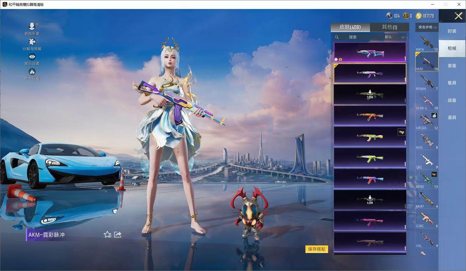AKM-梦之光华,SCAR-L-梦幻火箭,M416-五爪金龙,M416-电玩时刻,GROZA-镜光银凌,AUG-超新星,M762-青锋波束,UMP45-量子极限,Kar98K-未来歌姬,Kar98K-巳巳如意,M417-第五大道,SPAS-12-音爆索尼克
