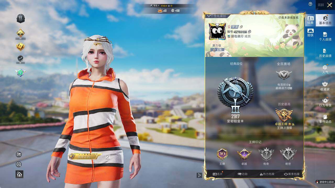 - PX_2102857-苹果QQ 历史总热力值:47784 粉装数量:6 特效枪数量:4 载具数量:5 王牌印记:14 历史最高段位:超级王牌14星 套装数量:122 时装数量:459 枪械数量:119 战备数量:89 装备数量:139 载具:合金龙骨(绿),海龙奔腾,路特斯ELETRE(冰川蓝),玛莎拉蒂Quattroporte(夜幕蓝),玛莎拉蒂MC20(星石白) 时装:套装-垂柳戏鸭,套装-彩
