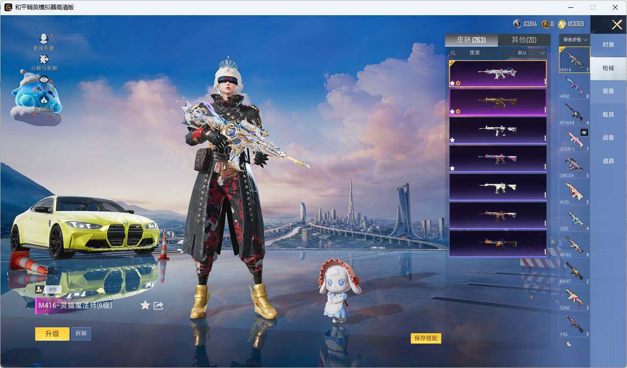 AKM-梦之光华,M416-五爪金龙,GROZA-镜光银凌,AUG-暖羊咩咩,M762-鬼刀,Kar98K-巳巳如意