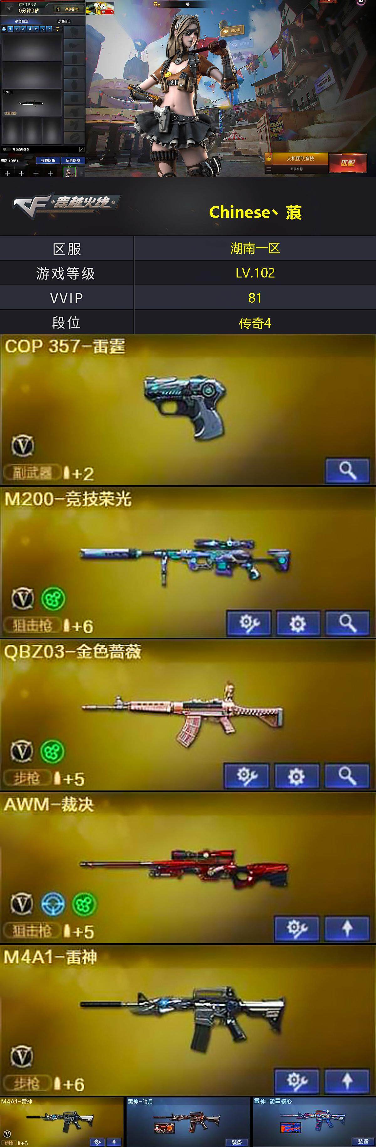 【热门武器】:QBZ03-金色蔷薇,M200-竞技荣光,M4A1-黑骑士,加特林-炼狱*4,沙鹰-修罗*5