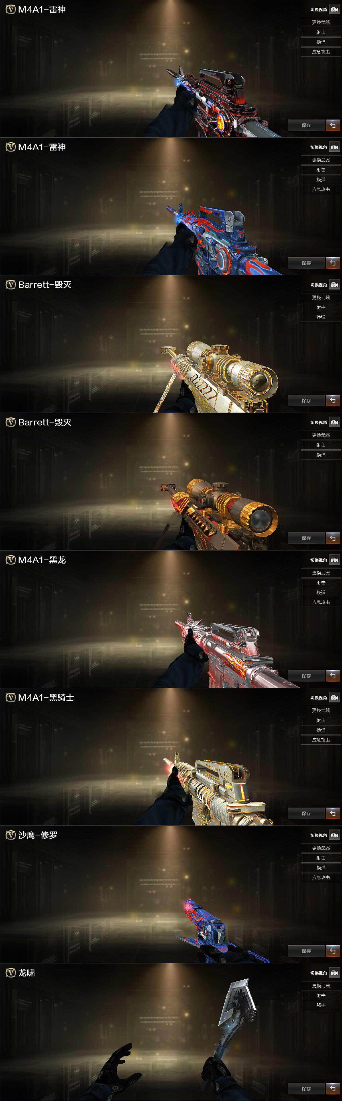 【音效卡】:AK47-火麒麟音效卡,M4A1-黑骑士音效卡,Barrett-毁灭音效卡