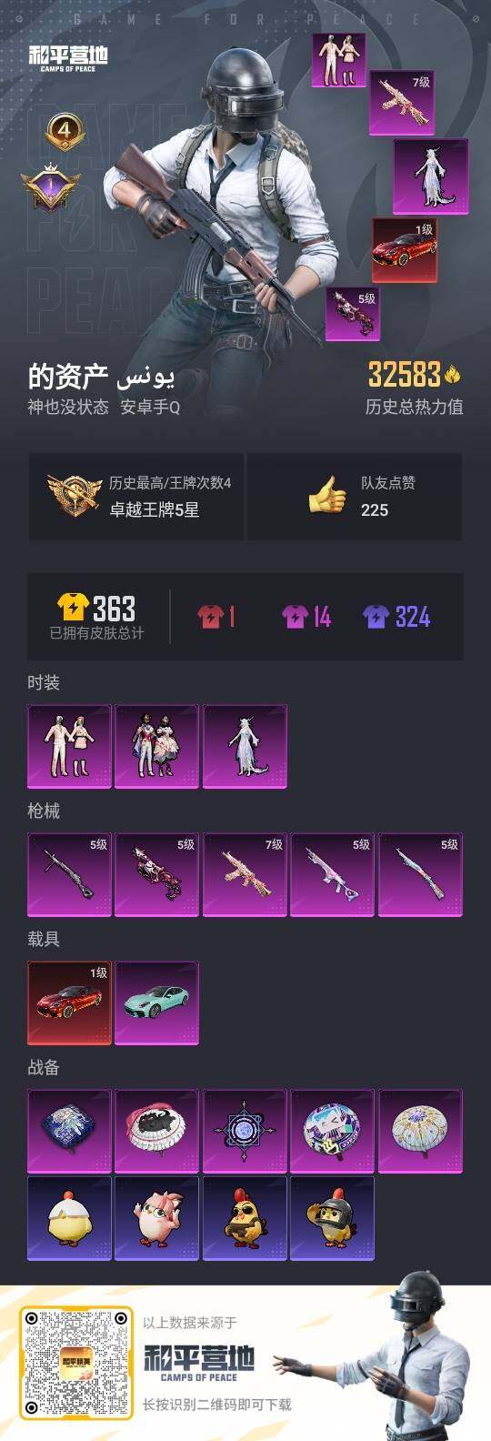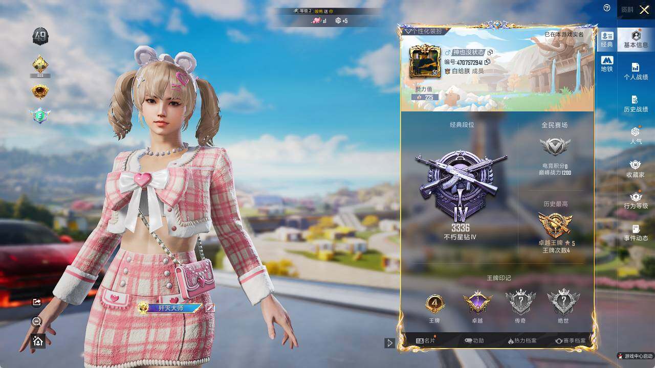- PX_2095995-0 可二次 苹果Q-36559热力值 8王牌印记 历史传奇王牌14星 1红装-2级图卡盟 三姐妹 第五大道 紫宾利 5级m4心之恋语 5级ak甜心宝贝 62套装 96枪皮 【1载具】 宾利BATUR(极速紫) 【1神装】 沙丘之主-图卡盟 (2级) 【1稀有】 奇异狩猎者 【5粉装】 宝贝奶油派 天使彩虹糖 甜心巧克力 智耀战神 第五大道 【7特效枪】 M416-心之恋语