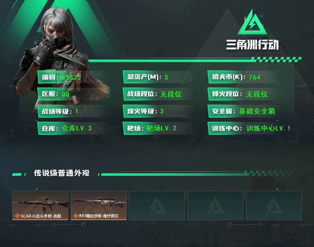 [13787933]【店主推荐捡漏号!可直接换绑】哈伏币-5m流动资产-3烽火等级-无段位-1战场等级-无军衔 【传说级普通外观】:SCAR-H战斗步枪-启航,R93狙击步枪-维什戴尔 【挂饰】:挂饰-维什戴尔,挂饰-蚀金玫瑰,挂饰-启程