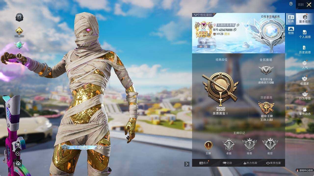 - PX_1048308-【山东一区-北部】【可二次可排位】999V999王者VIP6【主武器类型】 传说灵眸 传说幽瞳 M200-幻神 王者风神觉醒版 王者幻神觉醒版 M200-竞技荣光 王者M200-无畏金戈 王者星霆觉醒版 王者星神觉醒版 Kar98K-星神 星神-长生圣莲 星神-炽天使 传说圣谕 传说浩劫 传说圣灵 传说梦魇 传说辉光 传说夜影 传说光耀 传说暗裔 传说破晓 传说幽冥 八面凌龙