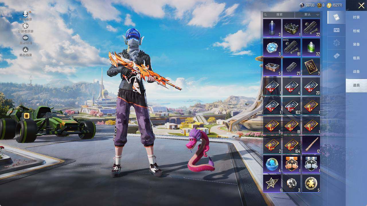 - [7337957]实名: 不可修改 时装数: 195 枪械数: 72 战备数: 53 热门装扮: 蝶舞迷情,零号机款机体服,盖世英雄,彩虹甜喵,茉莉星,白兰星,射星猎手,无畏白羊 稀有枪皮: M416风花雪月,SCAR-L青春物语