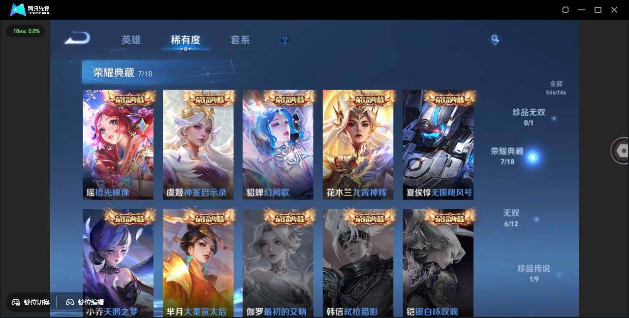 - PX_2080807-74 苹果QQ/最强王者/200皮肤/123英雄/2典藏/0珍品无双/0无双/0珍品传说/17传说/51史诗/7稀有英雄 【2 典藏皮肤】九霄神辉 花木兰,拾光映像 瑶, 【17 传说皮肤】云霓雀翎 虞姬,碎云 百里守约,神器·狴犴令 狄仁杰,深海之息 马可波罗,仲夏夜之梦 貂蝉,武陵仙君 诸葛亮,炽阳神光 镜,黄金射手座 后羿,霜月吟 露娜,无尽星芒 后羿,寅虎·瑞焰 鲁班