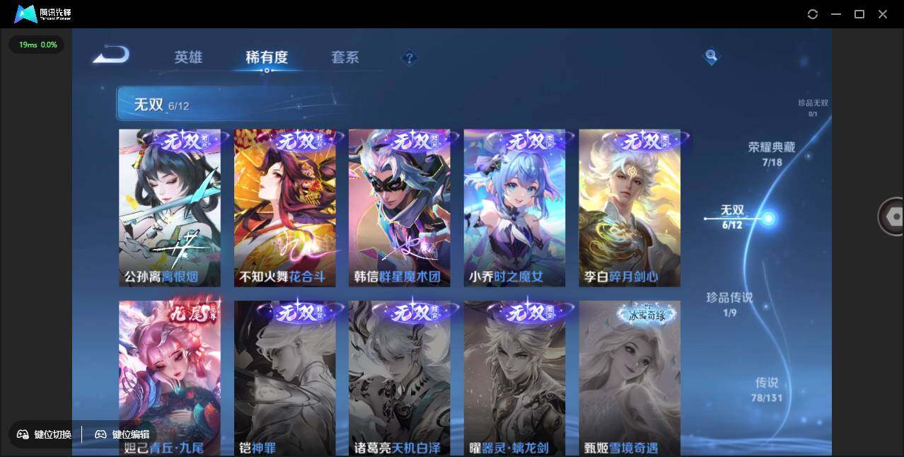 - [12279517]V5 1无双 2传说 125英雄 222皮肤 可修改实名 墨子小国标 女号 优质装备:青丘·九尾(妲己无双),青丘·九尾,涂山容容 传说皮:幻光神枪 珍宝阁皮:万物之道,优雅恋人,蔷薇恋人 限定皮:鸣野蒿,遇见飞天,高山流水,五谷丰年,游园惊梦,梁祝,李小龙,猪悟能 史诗皮:星界战将,百相守梦-黄忠,织梦人,电玩小子(小书包),黄金分割率,特工魅影,江河有灵,雪夜绮愿(周瑜),百解令(蒙犽),蒙恬荣光圣徽,冰冠公主,偶像歌手,龙骑士(小龙虾),猫狗日记-孙策,猫狗日记-大乔,乱世虎臣,节奏热浪,水果甜心,心灵骇客,德古拉伯爵,幽灵船长,鬼剑武藏,心灵战警,地狱岩魂,繁星吟游(呼啦呼啦),拒霜思,缤纷独角兽,逐浪之夏,水晶猎龙者,箭羽风息,金属风暴,原初追逐者,圣诞狂欢,圣诞恋歌,鹰眼统帅,黎明之约,未来纪元-赵云