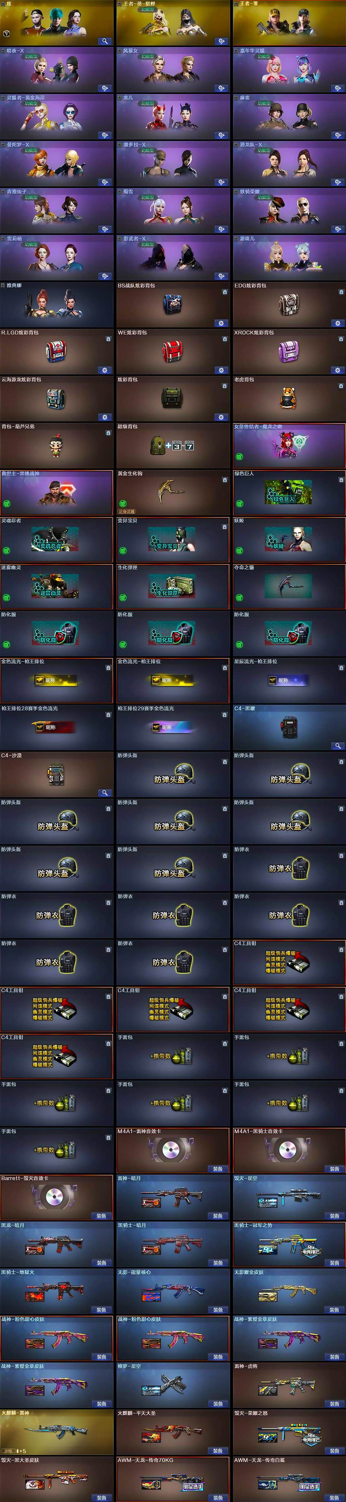 【皮肤】:雷神-暗月,雷神-虎将,火麒麟-雷神,火麒麟-平天大圣,毁灭-荣耀之怒,毁灭-星空,毁灭-黑大圣皮肤,毁灭-英雄计划 皮肤,黑龙-暗月,黑骑士-暗月,黑骑士-冠军之势,黑骑士-地狱火,无影-能量核心,无影耀金皮肤,战神-粉色甜心皮肤*2,战神-紫绶金章皮肤*2,AWM-天龙-传奇70KG,AWM-天龙-传奇白鲨,修罗-星空