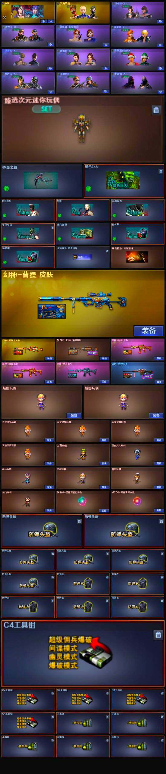 【皮肤】:M200-幻神-黄忠皮肤,幻神-纸灯龙皮肤,幻神-曹操 皮肤,M4A1-战神赵云,雷神-脉冲核心,雷神-刘备 皮肤*2,毁灭-战神张飞,M4A1-千变-孔明皮肤
