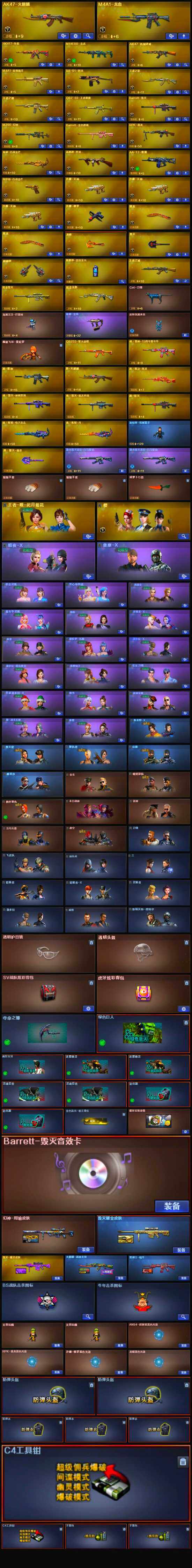 【英雄级武器】:AK47-火麒麟,AK47-机械迷城,M4A1-龙血,HK417-朱雀,M14EBR-玄武,M4A1-玫瑰精灵,王者之影-觉醒版,王者之魄-觉醒版,QBZ-03-王者蔷薇-觉醒版,Barrett-毁灭,M200-幻神,Barrett-金色蔷薇,RPK-盘龙,炼狱-百战金芒,汤姆逊-烈龙,AA-12-雷霆,沙鹰-修罗,沙鹰-天神*3,柯尔特-百战金芒,屠龙*2,龙啸,擎天,麒麟刺,麒麟刺-百战金芒,烟雾弹-竞技荣光,M4A1-赤狱骑士