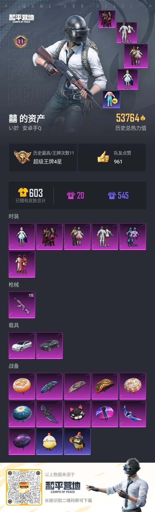 - [12659291]安卓 手Q-21粉装-8特效枪-4载具-6粉色飞行器-79501热力值-7王牌印记-166套装-197枪皮 【热门品类】:粉装-梦幻火箭,套装-沙漠守护者,套装-浪漫波比,套装-粉红小猪 【粉色载具】:特斯拉Model 3(珍珠白),霜龙神御(云雾蓝),双人摩托-梦幻火箭,星梦玉骢 【粉色套装】:粉装-深海曼妙,粉装-快乐主宰,粉装-梦幻火箭,粉装-金属狂野,粉装-静灵氛围,粉装-放客神游,粉装-PEL轰鸣竞梦者,粉装-新星烈龙,粉装-冰霜白皇,粉装-炙焰红王,粉装-恐龙拽拽,粉装-冷魅冰骑,粉装-赤焰黑爵,粉装-紫电风暴,角色-狂魅哈莉,角色-冷漠罗丽,角色-宁雨蝶,角色-天穹,角色-荧海星豚,角色-绯穹魔姬 【粉色枪皮等级】:AKM-炫紫旋律(五级),SCAR-L-童趣迷兔(四级),M762-冷魅冰骑(五级),蜜獾-荧海星豚(四级),UZI-绮梦青鸾(四级),UMP45-恐龙拽拽(四级),P90-冷漠罗丽(五级),DP-28-豹影疾电(五级) 【粉色枪皮】:AKM-炫紫旋律,SCAR-L-童趣迷兔,M762-冷魅冰骑,蜜獾-荧海星豚,UZI-绮梦青鸾,UMP45-恐龙拽拽,P90-冷漠罗丽,DP-28-豹影疾电 【粉色飞行器】:深海曼妙飞行器,梦幻火箭飞行器,炫紫旋律飞行器,神秘黑猫飞行器,古堡领主飞行器,幻星舰长飞行器 【粉色降落伞】:深海曼妙降落伞,快乐主宰降落伞,至尊龙雀降落伞,梦幻火箭降落伞,天启纪元降落伞,金风玉露降落伞,龙虾霸霸降落伞,PEL轰鸣竞梦者降落伞,神秘黑猫降落伞,古堡领主降落伞,童趣迷兔降落伞,青春物语降落伞,恐龙拽拽降落伞,冷魅冰骑降落伞,星梦奇缘降落伞,幻星舰长降落伞,幻彩电音降落伞,双重狂想降落伞,冷漠罗丽降落伞,荧海星豚降落伞,绯穹魔姬降落伞 【稀有套装】:套装-暖暖向日葵,套装-霓虹热舞,套装-极速光影,套装-彩虹兔,套装-云朵鹅,套装-雪绒豹,套装-混沌火种,角色-时希公主,角色-灵公主,角色-乐音,套装-蜜露汐语,套装-蓝海鲸歌,角色-绛羽幽主,角色-夜瞳黯灵,套装-朱霞炽焰,套装-凌霄紫焰,套装-擎苍青焰 【稀有枪皮】:AKM-PEL轰鸣竞梦者,AKM-天启纪元,AKM-彩虹符号,AKM-恐龙拽拽,AKM-沙漠守护者,AKM-生命誓言,AKM-破晓战魂,AKM-萌趣颜团子,AKM-虎虎生威,M16A4-快乐主宰,M16A