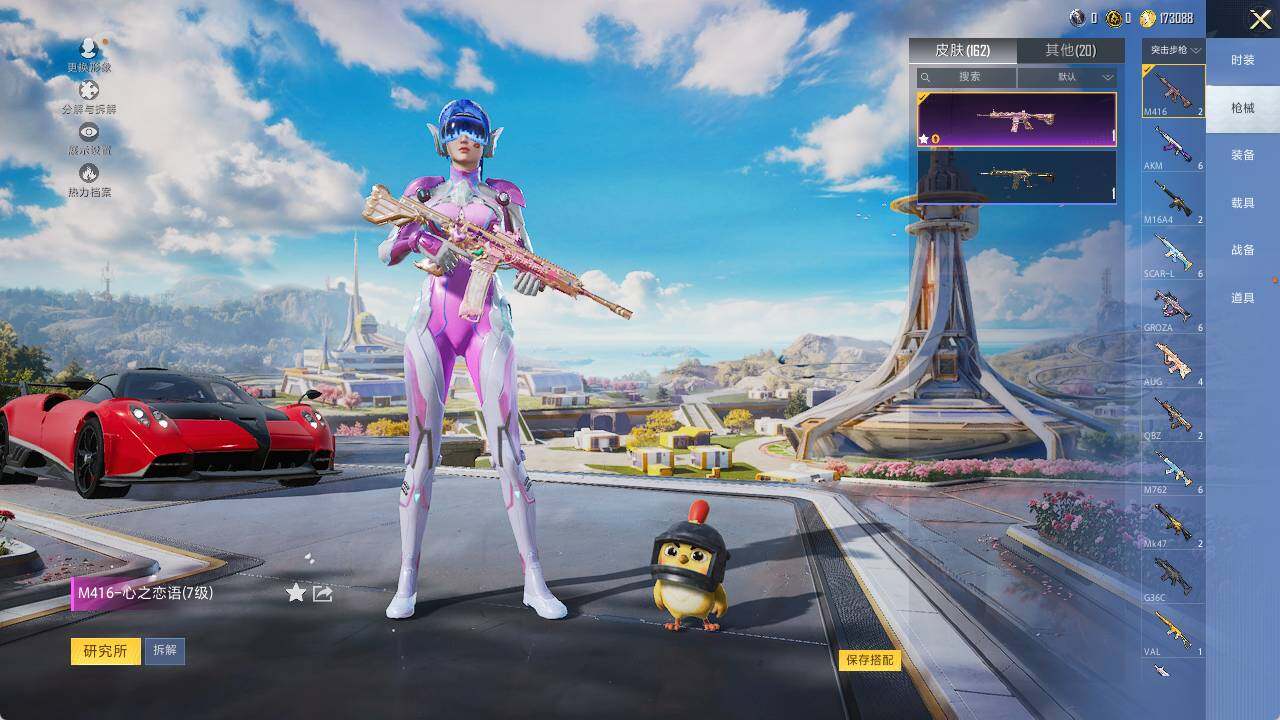 M416-心之恋语,GROZA-镜光银凌,AUG-暖羊咩咩,Kar98K-巳巳如意