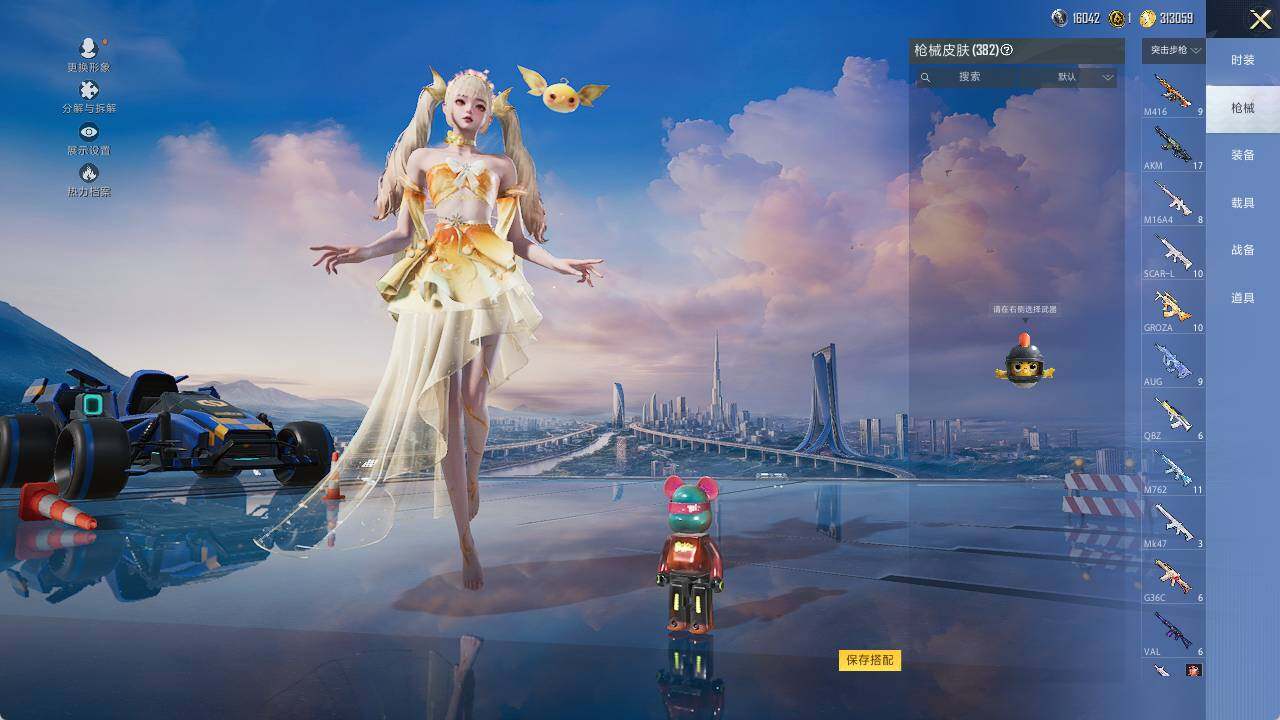 AKM-炫紫旋律,AKM-幽焰骑士,SCAR-L-纯梦嫁纱,M416-至情至圣,GROZA-巴啦啦小魔仙,GROZA-精灵之光,AUG-星梦奇缘,M762-冷魅冰骑,UMP45-宇宙意志,AKS-74U-信仰神谕,Kar98K-巳巳如意,Mk14-盛世惊鸿,破片手榴弹-热量炸弹