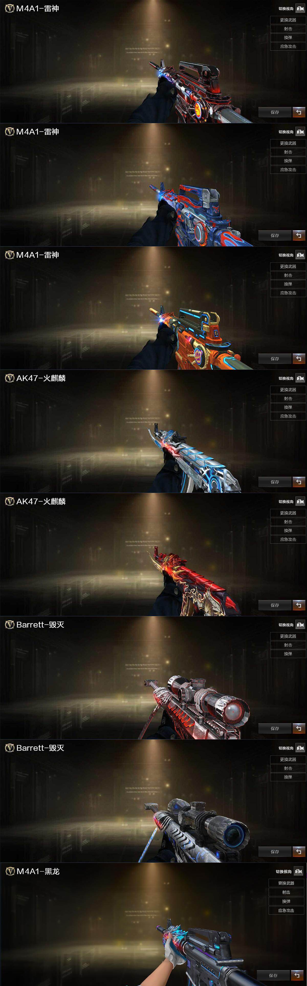 【皮肤】:雷神-暗月,雷神-能量核心,雷神-源计划2.0专属 皮肤,火麒麟-雷神,火麒麟-平天大圣,毁灭-暗月,毁灭-星空,M4A1-黑龙-361