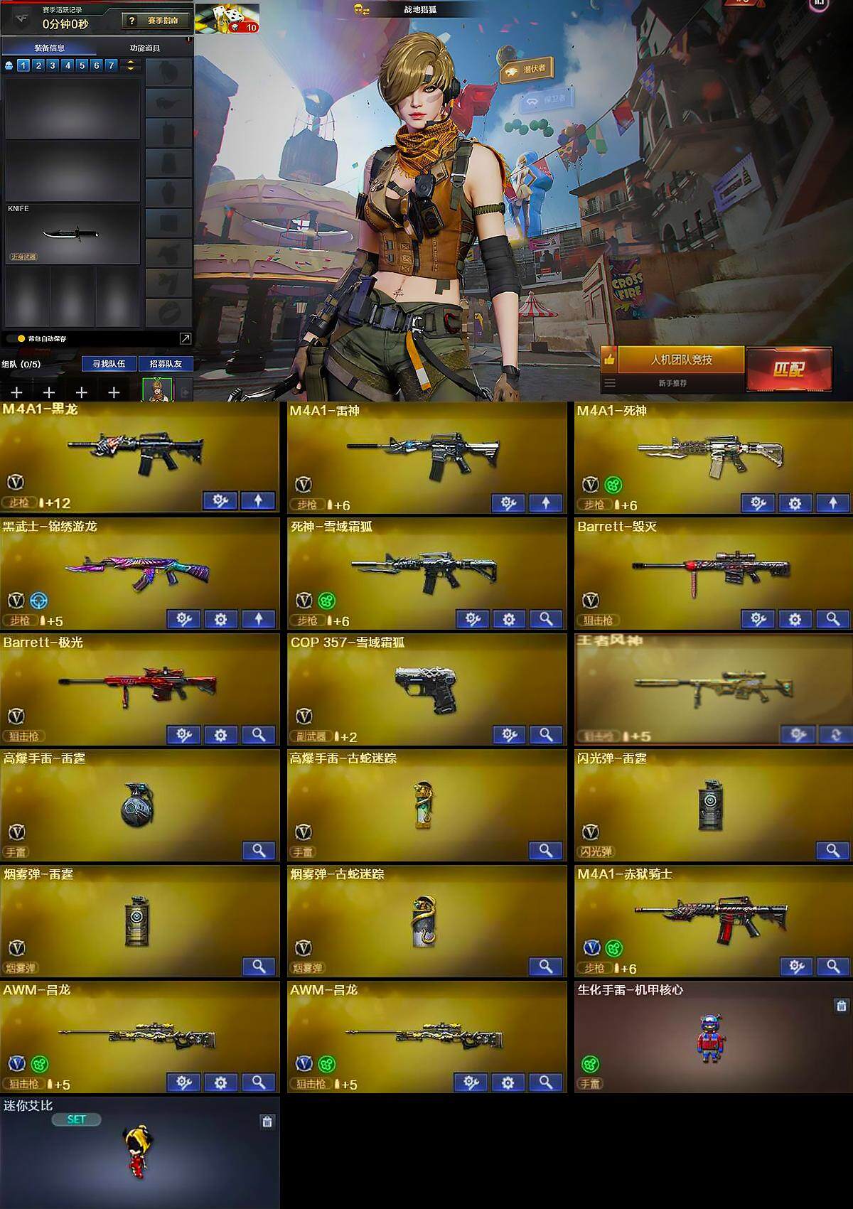 【英雄级武器】:M4A1-黑龙,M4A1-雷神,M4A1-死神,黑武士-锦绣游龙,死神-雪域霜狐,Barrett-毁灭,Barrett-极光,COP 357-雪域霜狐,高爆手雷-雷霆,高爆手雷-古蛇迷踪,闪光弹-雷霆,烟雾弹-雷霆,烟雾弹-古蛇迷踪,M4A1-赤狱骑士,AWM-昌龙*2