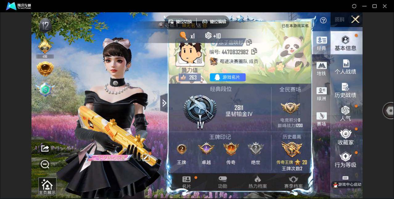 - [11600131]可二次 可修改实名 实名:可修改 进阶安全箱(9.17到期) 烽火地带段位:三角洲巅峰 全面战场段位:无段位 总资产:213.1 哈夫币:61.400 传说武器皮肤:复合弓-黑-天际线,CAR-15突击步枪-阿米娅 史诗武器皮肤:M16A4突击步枪-竞赛选手,SV-98狙击步枪-林中猎手,SCAR-H战斗步枪-囚徒