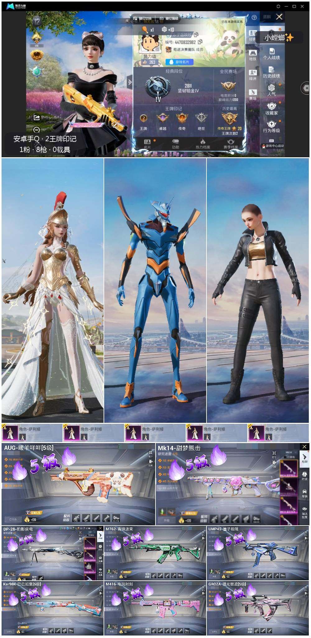- [13131157]素材身法号 安卓 微信-3神装-32粉装-23特效枪-7载具-8粉色飞行器-11.9w热力值-13王牌印记-253套装-291枪皮【红色神装等级】:镜域双华-欧若拉(一级),沙丘之主-图卡盟(三级),角色-青焰关公(一级)【热门品类】:粉装-雪国幻梦,粉装-梦幻火箭,粉装-畅跳缤纷,粉装-童趣迷兔,粉装-音爆索尼克,套装-小丑鱼,角色-军刀雅典娜,套装-SS1特训,角色-忠猛周仓,角色-忠真马岱,角色-忠义严颜,套装-六号树人,套装-龟仙人,角色-8号机,小恶魔头饰,熔岩游骑兵面罩,大砍刀-青龙偃月刀,撬棍-龙胆亮银枪,熔岩游骑兵连帽夹克【粉色载具】:阿斯顿马丁DBS(红),玛莎拉蒂Quattroporte(夜幕蓝),玛莎拉蒂Grecale(薄荷绿),焰龙咆哮,鬼马风驰,赤兔,照夜玉狮子【粉色套装】:粉装-宝贝奶油派,粉装-天使彩虹糖,粉装-雪国幻梦,粉装-梦幻火箭,粉装-童趣迷兔,粉装-蜜桃特工,粉装-暗夜玫瑰,粉装-彩虹鹿灵,角色-洛天依,角色-2号机款机体服,粉装-恐龙拽拽,粉装-紫电风暴,粉装-灵感创作师,粉装-旋转彩虹,粉装-冰川粉黛,粉装-冰川幽秘,粉装-冰川红玫,粉装-暗夜鎏金,粉装-海螺星光,粉装-音爆索尼克,粉装-畅跳缤纷,粉装-第五大道,粉装-仲夏莫吉托,粉装-闲梦青缨,角色-茉莉星,角色-宙之时溯,玩偶服-猪猪侠,角色-烟云彩露,角色-严莉莉,角色-小蓝,角色-美雪,角色-美琪【粉色枪皮等级】:AKM-百合蜜语(四级),SCAR-L-桃夭倾城(四级),M416-暖熊萌萌(四级),GROZA-旋转彩虹(四级),AUG-超新星(四级),M762-冷魅冰骑(三级),蜜獾-辉耀战甲(三级),UZI-畅跳缤纷(四级),UMP45-恐龙拽拽(二级),UMP45-启明星(四级),Vector-环太平洋(四级),汤姆逊-冰川粉黛(四级),P90-粉樱探戈(一级),P90-沙丘之主(三级),M24-莲影清波(四级),M24-镜域双华(三级),M417-第五大道(三级),MK20-H-海螺星光(四级),M249-猪猪侠(四级),DP-28-暗夜鎏金(四级),MG3-洛神天依(四级),PKM-江南烟雨(四级),平底锅-仲夏莫吉托(三级)【粉色飞行器】:扶摇飞仙飞行器,甜梦小狐飞行器,畅跳缤纷飞行器,粉樱探戈飞行器,萌物绒绒飞行器,沙丘之主天马,镜域双华-灵镜之阶