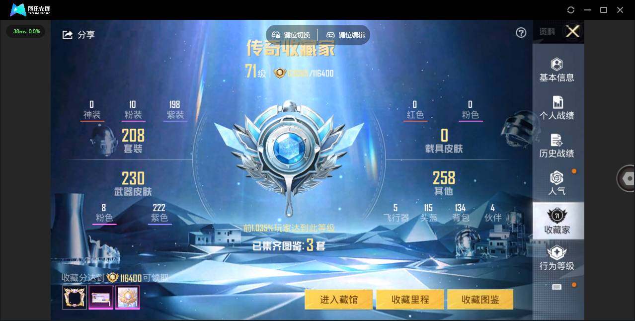 - [12088230]4粉装 6特效枪 1载具 14印记 可二次 可修改实名 身法装备:暗影哥特(红眼罩) 优质装备:路特斯EVIJA(星际黄),AKM炫紫旋律,M416五爪金龙,奇异狩猎者,金风玉露,彗云及圣,AUG星之彼岸,七级AUG-星之彼岸,七级AKM-炫紫旋律,智耀战神,AMR-智耀战神,Kar98K-巳巳如意 热门装扮:筑梦精灵,神秘黑猫,仓鼠灰灰,鹰眼刺客,浪漫波比,好奇恐龙 稀有枪皮:DP-28-豹影疾电 六级特效枪:六级AMR-智耀战神 五级特效枪:五级Kar98K-巳巳如意,五级DP-28-豹影疾电 四级特效枪:四级M416-五爪金龙 紫色装扮:娇憨猪猪,萌趣咩咩,SS21特训,SS31特训套装,SS5特训,冰川特警,冷焰舞者,凛冬战士,刚毅裁决者,北国孤狼,旭日情侣,极速光影,SS30特训套装,SS33特训套装,顶瓜瓜,SS20特训,时空追击者,暴风机械师,SS16特训,冰爽风暴,SS13特训,骁骑迪迦,SS14特训,音速流光,SS19特训,军刀雅典娜,甜心亚梦,虚音幻奏,瑞龙福将,团圆交子,SS17特训,SS18特训,智慧隐士,都市漫游者,都市魅力,酷潮明星,长空猛禽,雨林探路者,雪山征服者,雪山精英,霓虹极客,霓虹街区,青春校园,缤纷果语,耀眼新星,荣耀,蓝彩潮人,蓝色运动,虎虎生威吉莉,街头潮人,跃动心情,魅力单车,黎明保卫者,黑色伏地魔,龙的传人,沙漠毒蛇,极地朋克,极速红龙,格斗先锋,棕色飞行服,沙漠兵团,暗金炫舞,海岛探路者,深蓝色名流,清新柠檬,滨海假日,圣诞大吉,坚韧舞者,夏日音浪,幻世战舞者,探宝勇士,滨海厨神,绮丽涂鸦,疯狂小兔子,白熊同盟,白色伏地魔,甜蜜告白,福星高照,竞技勇士朋克,竞技达人朋克,甜蜜熊情侣,潮流先锋,牛气冲天,灰色格斗者,热血青春,熔岩使者,牛气满满,特战装甲,SS29特训,星途旅人,光矢逐梦,异域银装,鱼渊荷华,玉兔迎春,燕燕于飞,巳巳如意,烈火街头,森林游猎者,竞技名士,暗影哥特(红眼罩),街头风暴,惊鸿侠骨,SS24特训(SS24特训套装),SS25特训,锦衣飞扬,粉红小猪,金羽特工,小丑鱼,SS26特训,智谋强哥,精神漫游,炽焰拳师,格斗专家,SS6特训,银河圣歌,闪耀星光,黑色刀锋,核芯基因,拳皇97八神庵,SS7特训,人鱼之吻,深蓝冒险家,迷域探索者,精密机核,摩艾涂鸦,SS8特训,大橘大利,SS12特训,众
