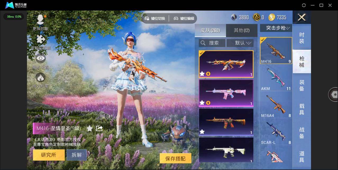 AKM-梦之光华,SCAR-L-青春物语,M416-至情至圣,M416-电玩时刻,GROZA-旋转彩虹,Kar98K-巳巳如意