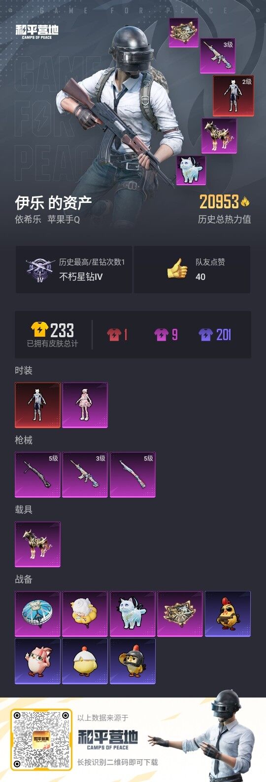 - PX_2088426- 可二次 安卓手Q-4王牌印记-7粉装-3特效枪-0载具-47143热力值-126套装-152枪皮-0卓越印记-0传奇印记, 【7粉装】,梦幻火箭,冰霜白皇,炙焰红王,吟月归客,未来歌姬,仲夏莫吉托,创世·救赎, 【3特效枪】,M416-五爪金龙-7级,AUG-暖羊咩咩-5级,Kar98K-巳巳如意-5级, 【5稀有紫装】,2B战斗服款,暗影哥特,深海小丑鱼,迅捷狂鲨,龟仙人