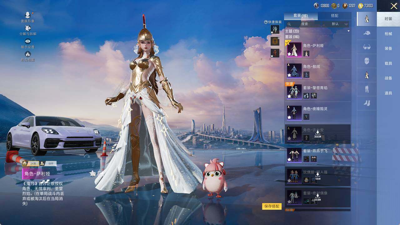 角色-军刀雅典娜,套装-龟仙人,套装-粉红小猪,套装-极速红龙,套装-狂沙舞者,套装-破蛋小黄鸡,套装-漫步者,套装-弄潮海豚,角色-赛罗奥特曼,套装-瑞龙福将,套装-团圆交子