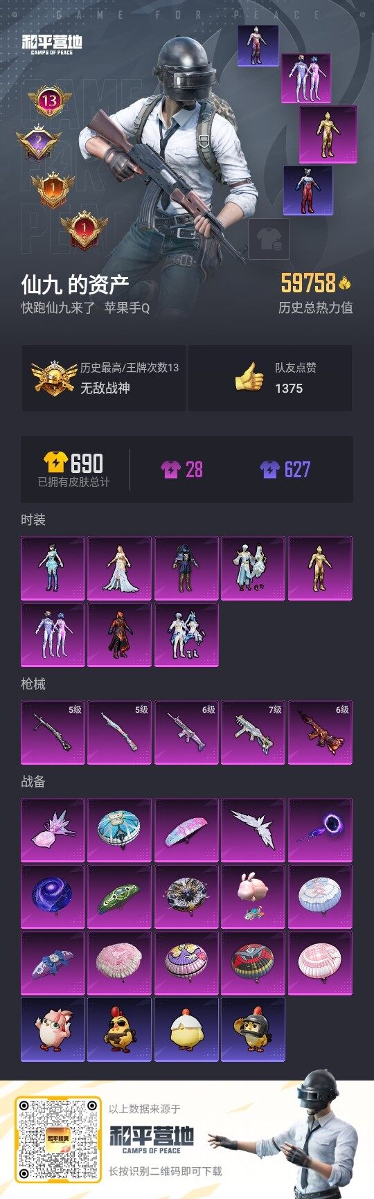 - PX_2104181- 苹果手Q-7王牌印记-2粉装-3特效枪-0载具-58904热力值-154套装-204枪皮-0卓越印记-0传奇印记 【2粉装】,暗星紫秘,圣堂之誓 【3特效枪】AKM-绿萝繁花-5级 SCAR-L-锦绣绵绵-5级 M249-蓝莓炮弹-7级 【4稀有紫装】,雪山精英,小丑鱼,龟仙人,金羽特工, 【154稀有时装】,SS33特训,SS32特训,星渊小夜曲,龟仙人,雪山精英,小丑