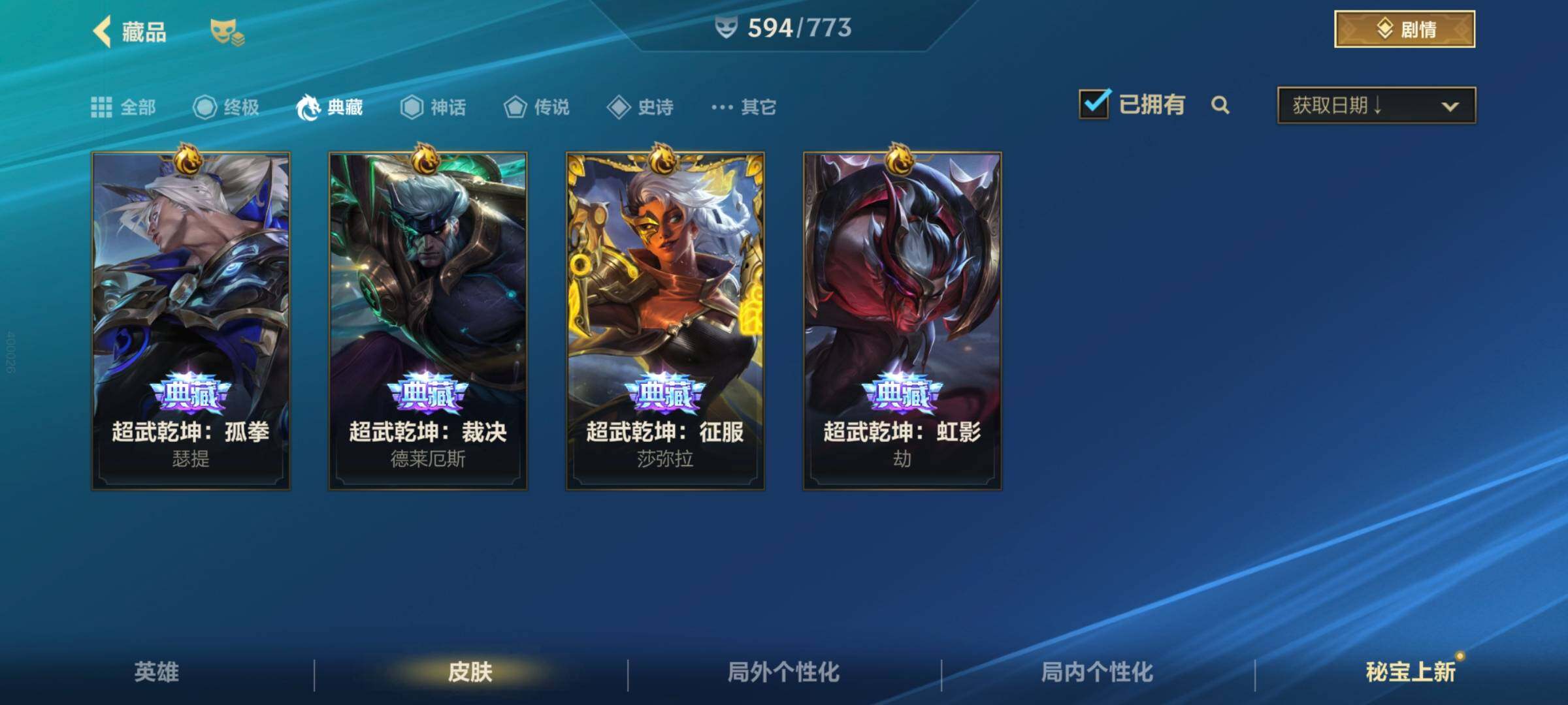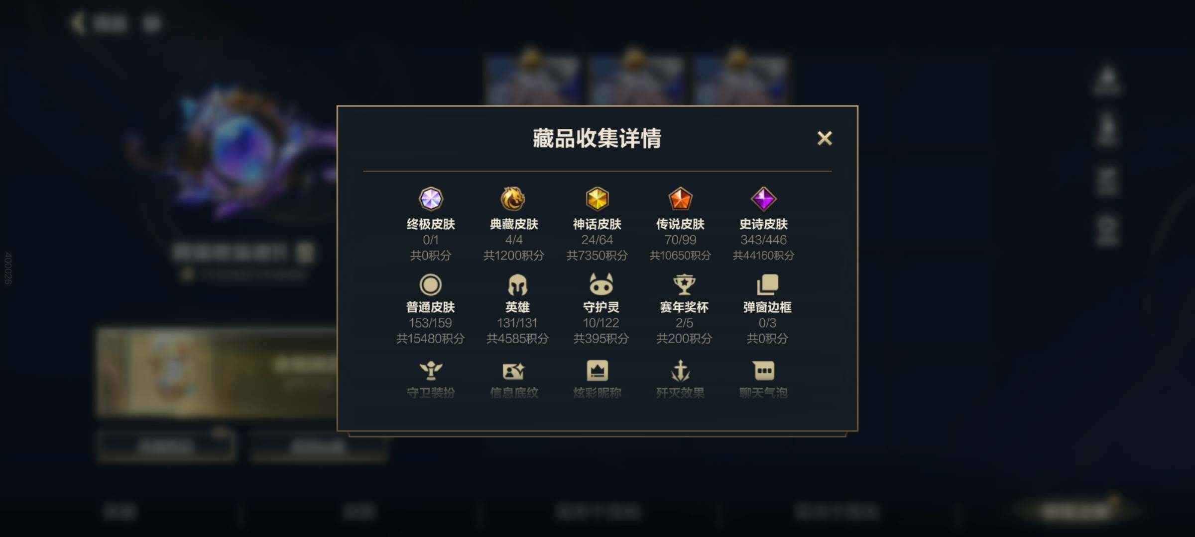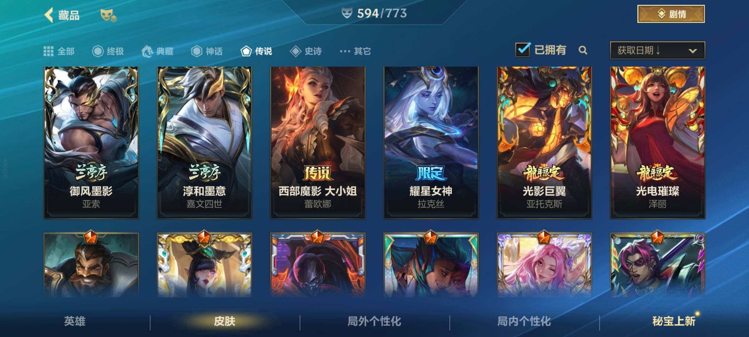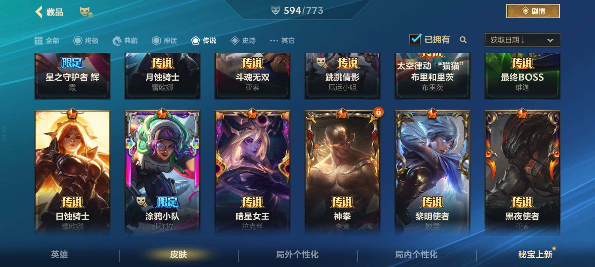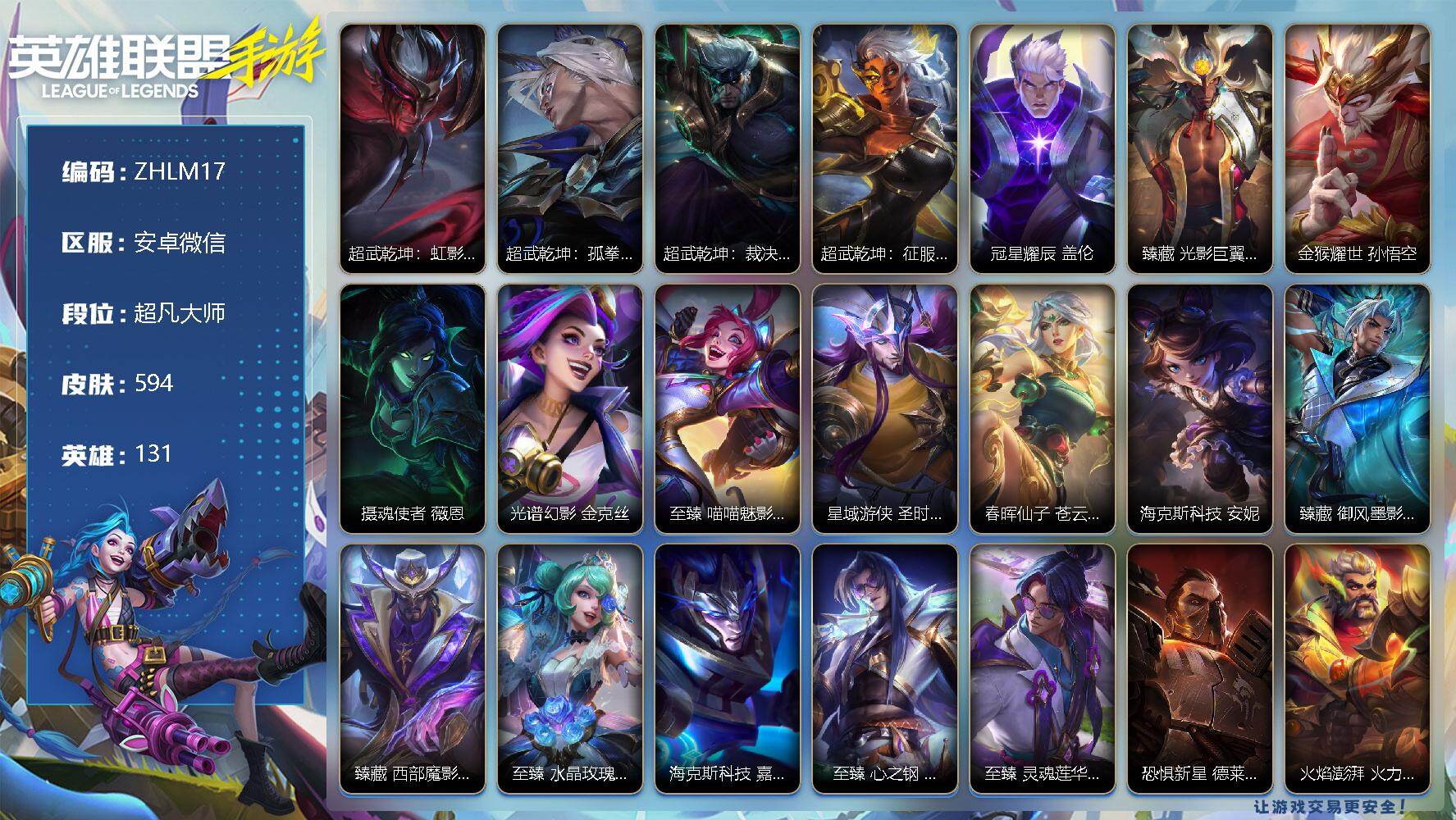 [13446506]有二次!历史国服第2绝世艾希!历史国服第9蔚!历史国服第10泰坦!11.5w收藏!594皮肤4典藏24神话70传说343史诗!白龙黑龙回城!满海克斯!玄金队旗!满涂鸦小队!满水晶玫瑰!黑龙回城! 套装收集:涂鸦小队 兰亭墨韵 西部魔影 心心相印 龙腾华彩 春晖众神 超武乾坤 水晶玫瑰喜宴 庆典 源计划 海克斯 斗魂无双 秩序与混沌 战斗学院白金启程 黑雾侵袭 玉兔呈祥 ,超武乾坤:虹影 劫,超武乾坤:孤拳 瑟提,超武乾坤:裁决 德莱厄斯,超武乾坤:征服 莎弥拉,至臻 灵魂莲华 易,满弓镇魂 箭无虚发 韦鲁斯,涂鸦小队 斑斓艺术 布兰德,臻藏 御风墨影 亚索,臻藏 西部魔影 卢锡安,火焰澎湃 火力全开 格雷福斯,臻藏 光影巨翼 亚托克斯,春晖仙子 苍云缥缈 卡莎,至臻 心之钢 永恩,至臻 水晶玫瑰 格温,星域游侠 圣时豪杰 崔斯特,恐惧新星 德莱厄斯,海克斯科技 安妮,冠星耀辰 盖伦,斗魂耀世 德莱文,至臻 喵喵魅影 金克丝,摄魂使者 薇恩,战斗学院 白金学长 伊泽瑞尔,海克斯科技 吉格斯,光谱幻影 金克丝,海克斯科技 嘉文四世,蝶恋春 凯特琳,金猴耀世 孙悟空,海克斯科技 阿利斯塔,水晶玫瑰 卡莎,黎明使者 德莱文,魔女 伊芙琳,花车开起来咯! 墨菲特,斗魂觉醒 莎弥拉,战斗学院 凯特琳,御风墨影 亚索,淳和墨意 嘉文四世,西部魔影 大小姐 蕾欧娜,耀星女神 拉克丝,光影巨翼 亚托克斯,光电璀璨 泽丽,光明哨兵 格雷福斯,春晖神女 莫甘娜,源计划:毁灭 派克,星之守护者 熠 洛,水晶玫瑰 萨勒芬妮,心之钢 凯隐,灵魂莲华 瑟提,灵魂莲华 阿狸,星之守护者 卡莎,星域武神 贾克斯,霸天零式 赛恩,未来战士 凯特琳,星之守护者 辉 霞,月蚀骑士 蕾欧娜,斗魂无双 亚索,跳跳倩影 厄运小姐,太空律动 “猫猫”布里和里茨 布里茨,最终BOSS 维迦,日蚀骑士 蕾欧娜,涂鸦小队 莎弥拉,暗星女王 拉克丝,神拳 李青,黎明使者 锐雯,黑夜使者 亚索,黎明使者 永恩,星之守护者 阿狸,源计划:泯灭 雷克顿,源计划:林 易,驯龙炮手 崔丝塔娜,剪胜裁春 格温,灵魂莲华 锤石,神王 德莱厄斯,神龙尊者 驭风啸龙 易,女主播 迦娜,律政大亨 蒙多医生,星域游侠 崔斯特,星之守护者 陨 洛,西部天使 艾希,神王 盖伦,炼狱魔犬 内瑟斯,地狱之门卫士 加里奥,光明哨兵 薇恩,天煞 劫,