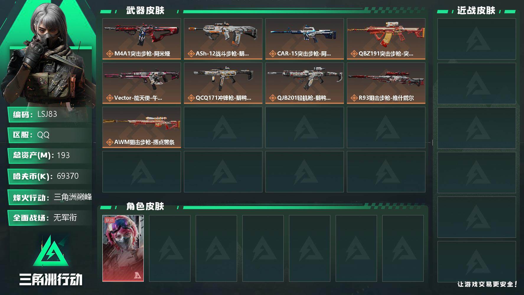 [13359388]【店主推荐捡漏号!可直接换绑】总资产139m【干员外观】:蛊-能天使午夜邮差 【传说级普通外观】:Vector冲锋枪-能天使-午夜邮差,M4A1突击步枪-阿米娅,ASh-12战斗步枪-鹅鸭杀,CAR-15突击步枪-阿米娅,AWM狙击步枪-捞点薯条,腾龙突击步枪-捞点薯条,QJB201轻机枪-鹅鸭杀,QCQ171冲锋枪-鹅鸭杀,R93狙击步枪-维什戴尔