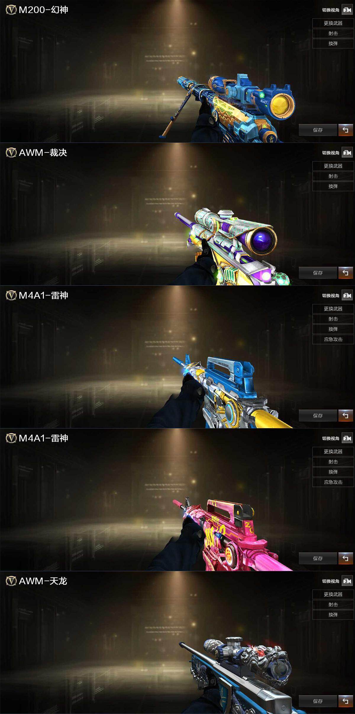 【热门武器】:M200-幻神,死亡之眼,荣耀世冠-火麒麟,柯尔特-冠军之特,加特林-炼狱*2,沙鹰-修罗*5