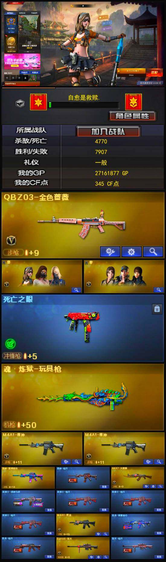 【英雄级武器】:QBZ03-金色蔷薇,M4A1-雷神*2,M4A1-黑龙,M4A1-死神*2,AK47-无影,AK47-火麒麟,AK47-黑武士,AK12-天启,AWM-天龙*2,Barrett-毁灭,Barrett-极光,AK47-机械迷城,M4A1-千变,沙鹰-天神,沙鹰-修罗*4,麒麟刺,擎天