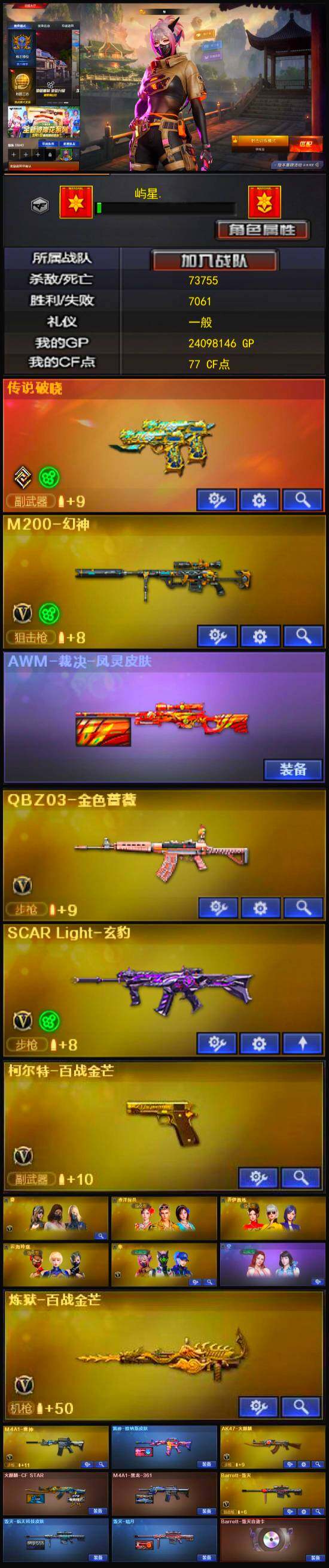 【热门武器】:传说破晓,QBZ03-金色蔷薇,M200-幻神,沙鹰-修罗*2