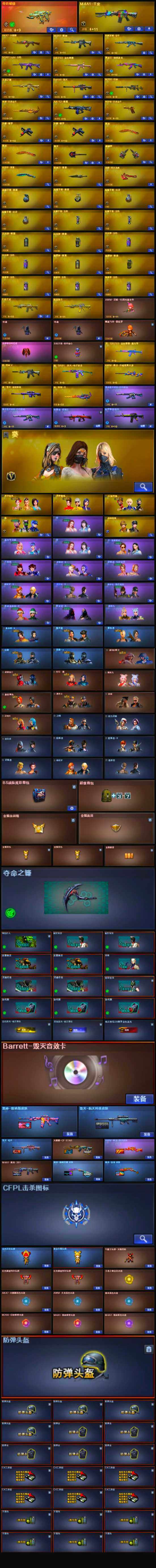 【音效卡】:Barrett-毁灭音效卡,Barrett-碧霄极光音效卡*2,炼狱-百战金芒-庆典舞曲音效卡,沙鹰-修罗-盛典舞曲音效卡,柯尔特-百战金芒-庆典舞曲音效卡,AWM-昌龙-怀旧音效卡