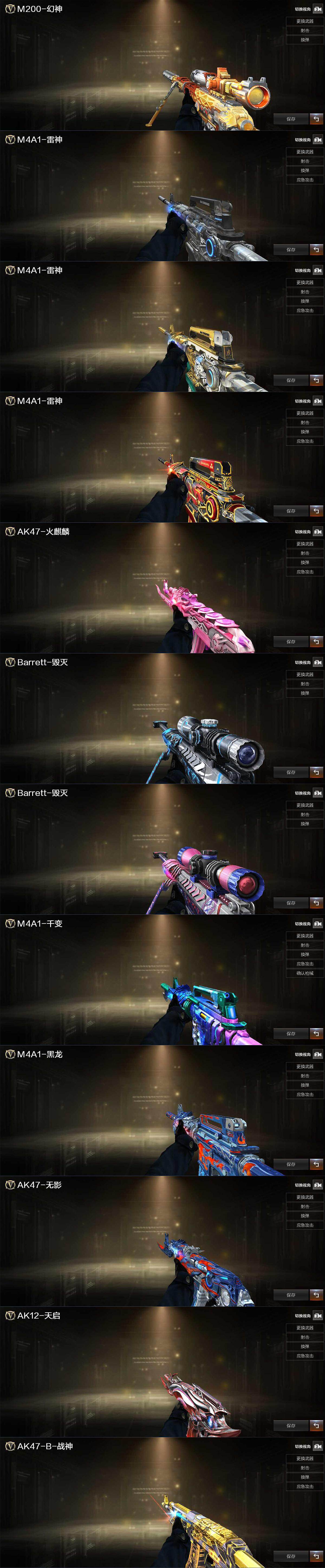 【热门武器】:QBZ03-金色蔷薇,M200-竞技荣光,荣耀世冠-柯尔特,金色小号,汤姆逊-烈龙,沙鹰-修罗,荣耀世冠-龙啸