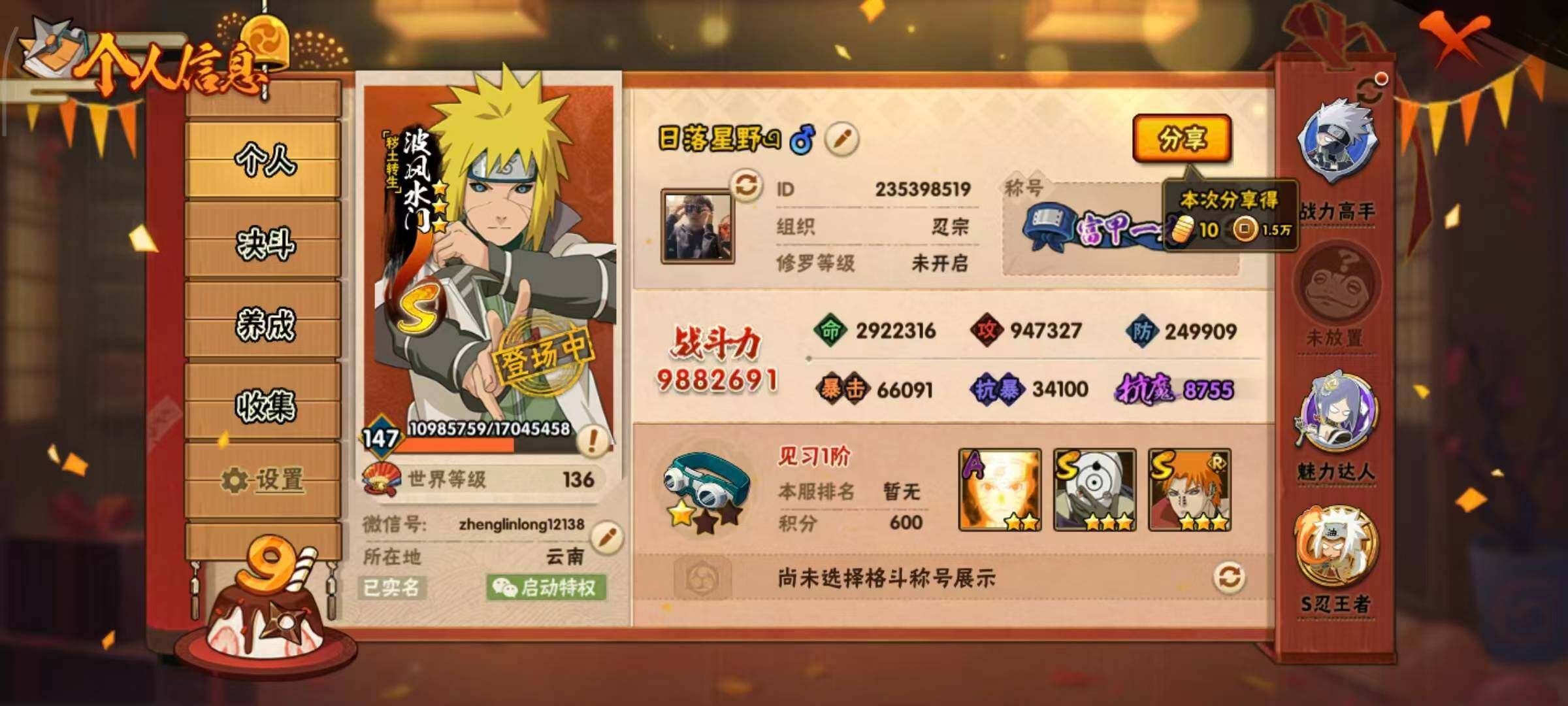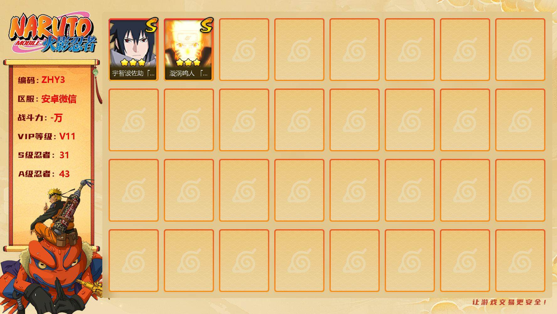 - 火影忍者手游/微信/安卓微信1-100区/1区漩涡鸣人