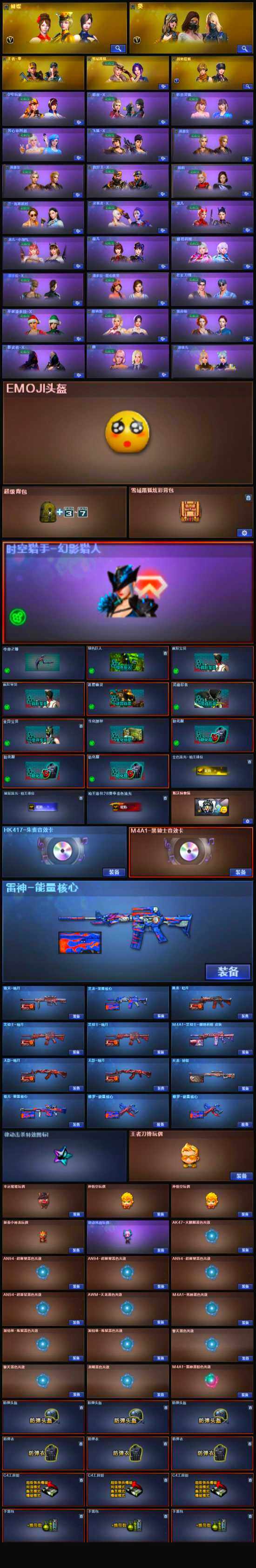 【道具】:云山科技背包,战舰背包,炫彩背包,白狐背包,老虎背包,超级背包,雪域霜狐炫彩背包,救世主-黑桃战神,绿色巨人,灵魂忍者,变异宝贝,迷雾幽灵,生化弹匣,夺命之镰,防化服*3,金色流光-枪王排位,星辰流光-枪王排位,枪王排位28赛季金色流光,语音特效-怀旧,雪域霜狐表情,热带奇洋表情,斯沃特表情,EP战队名片,EP战队喷图,防弹头盔*3,防弹衣*3,C4工具