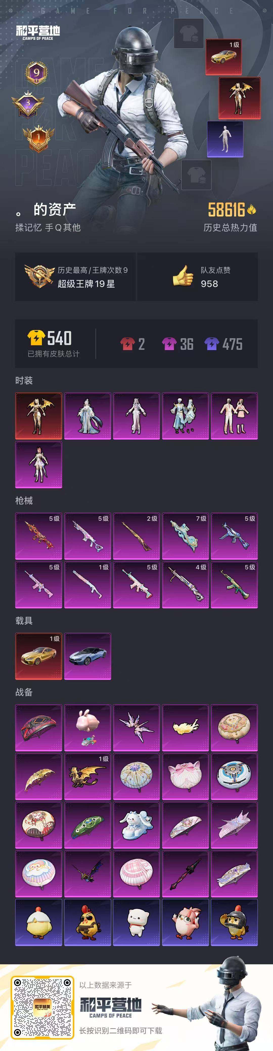 - PX_2086409- 苹果手Q-9王牌印记-2粉装-6特效枪-1载具-59864热力值-159套装-198枪皮-3卓越印记-1传奇印记 【2粉装】,新星烈龙,华贵君王 【6特效枪】M416-五爪金龙-6级 GROZA-镜光银凌-5级 Kar98K-巳巳如意-5级 M24-星之信仰-7级 P90-金丰海韵-5级 MG3-洛神天依-7级 【6稀有紫装】,都市猎人,Mark.06,暗影哥特,浪漫天命