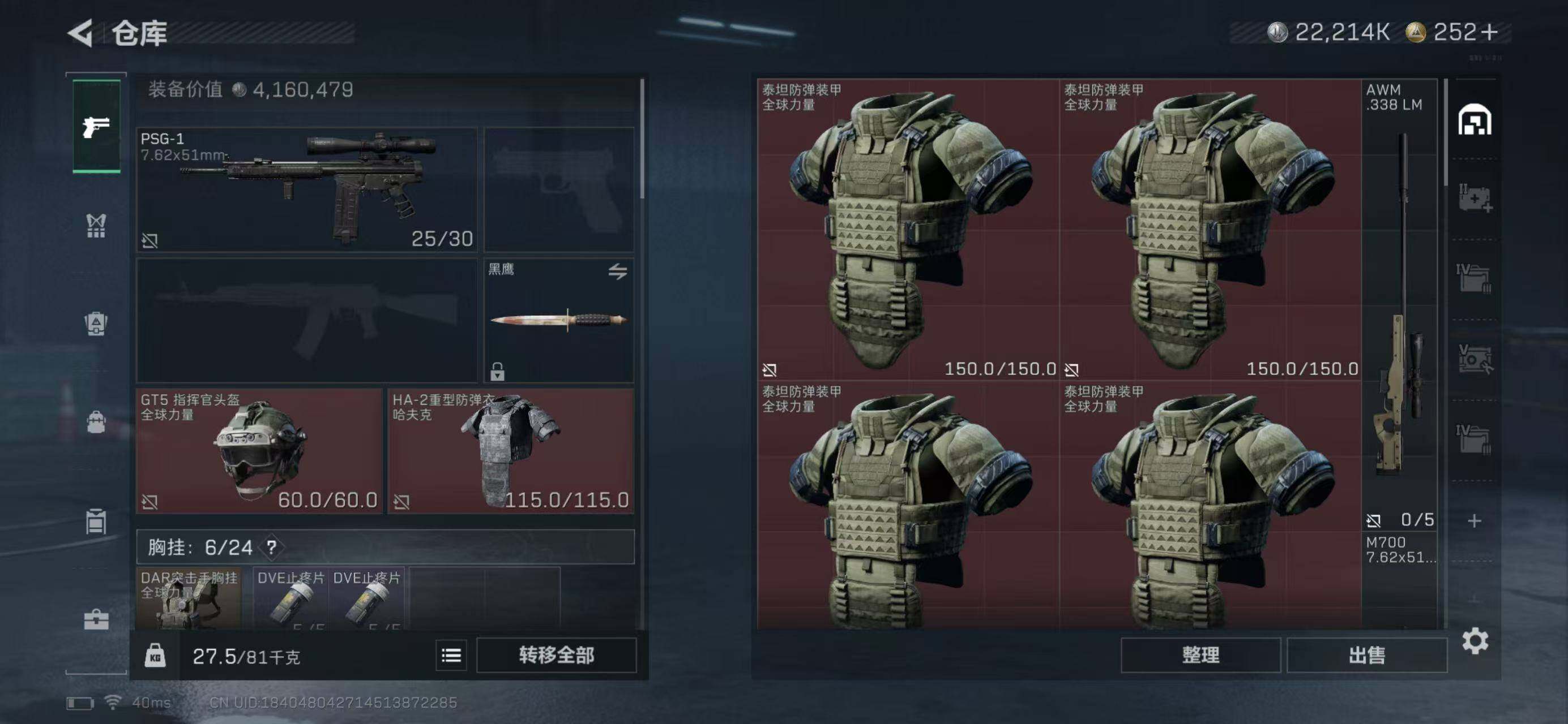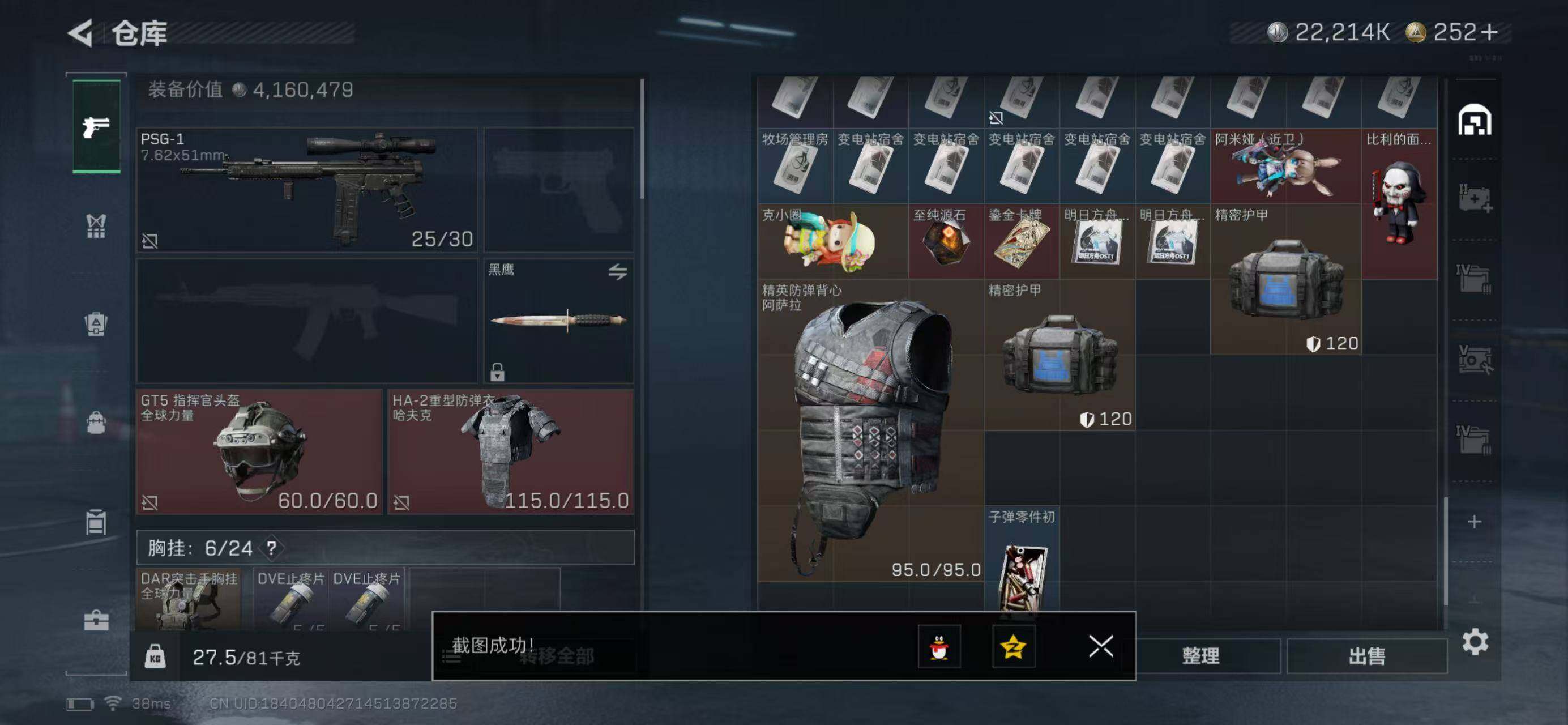 - [11632012]总资产:450M 2干员外观 13传说枪械 哈夫币:144K 可二次 可修改实名 优质装备:顶级安全箱(3x3),AUG突击步枪-气象感应(典藏) 烽火地带段位:黑鹰 全面战场段位:无段位 传说武器皮肤:AK-12突击步枪-夜鹰,93R-捞点薯条,AWM狙击步枪-捞点薯条,腾龙突击步枪-捞点薯条,AK-12突击步枪-特斯拉线圈,CAR-15突击步枪-阿米娅,SR-3M紧凑突击步枪-特斯拉线圈,UZI冲锋枪-特斯拉线圈,勇士冲锋枪-能天使-午夜邮差,复合弓-黑-天际线,M4A1突击步枪-阿米娅,M4A1突击步枪-蚀金玫瑰 史诗武器皮肤:Ash-12战斗步枪-守夜人,M16A4突击步枪-竞赛选手,PKM通用机枪-守夜人,AS Val突击步枪-尖端治疗,M700狙击步枪-守夜人,SG552突击步枪-尖端治疗,SR-25射手步枪-尖端治疗,M1014霰弹枪-林中猎手,AKM突击步枪-林中猎手,SV-98狙击步枪-林中猎手,PTR-32突击步枪-英雄,M250通用机枪-囚徒,SCAR-H战斗步枪-囚徒,腾龙突击步枪-无垢,MP7冲锋枪-无垢,PSG-1射手步枪-无垢,SVD狙击步枪-荒野求生,SR-3M紧凑突击步枪-荒野求生,QBZ95-1突击步枪-曙光,沙漠之鹰-曙光,Vector冲锋枪-阿萨拉文明 干员外观:红狼-蚀金玫瑰,蜂医-送葬人·无题密令(S5)