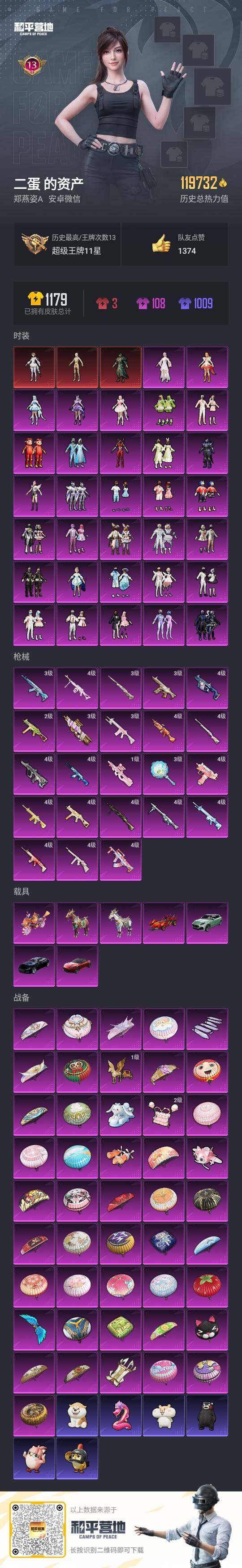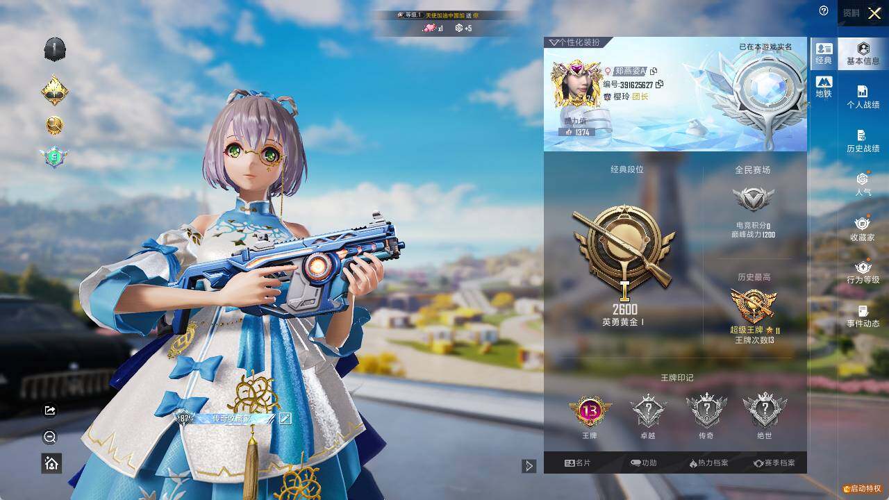 - [11523723]1粉装 2特效枪 6印记 可二次 可修改实名 优质装备:M249猪猪侠,七级M249-猪猪侠,萨利娅,Kar98K-巳巳如意 五级特效枪:五级Kar98K-巳巳如意 紫色装扮:SS22特训,SS23特训,娇憨猪猪,萌趣咩咩,SS21特训,SS31特训套装,人气偶像,冷焰舞者,SS30特训套装,SS33特训套装,青涩时光,SS20特训,SS19特训,军刀雅典娜,竞技角斗士,吉莉礼服,甜心亚梦,虚音幻奏,SS17特训,SS18特训,都市漫游者,都市魅力,酒红色名流,酷潮明星,野性战心,长空猛禽,霓虹街区,青年教官,青春校园,缤纷果语,耀眼新星,蓝彩潮人,蓝色守护者,蓝色运动,虎虎生威吉莉,街头潮人,魅力单车,鹤鸣,黄色伏地魔,黄色名流,黄色运动,黎明保卫者,黑色伏地魔,龙的传人,龟仙人,冰河战士,龙魂突击队,蝶变,香桃花海,极速红龙,柠萌假日,格斗先锋,橘黑制服,活力之心,涂山之恋,深蓝色名流,幻影武者,夏日音浪,完美偶像,帅气教官,幻世战舞者,战地督导,探宝勇士,湖蓝色名流,绮丽涂鸦,白熊同盟,白色伏地魔,破晓战魂,破蛋小黄鸡,福星高照,空岛之星,竞技达人朋克,红色运动,王牌教练,牛气冲天,灼焰舞者,炫蓝之夏,热血青春,燃烧卡路里,牛气满满,猛禽,特战装甲,猎鹰,粉日山川,小熊娃娃,雏菊兔兔,萝兰蝴蝶,SS29特训,湖畔霞光,星途旅人,纯真浪花,热情海星,曼妙人鱼,SS28特训,卖崽青蛙,石蕴玉辉,鱼渊荷华,玉兔迎春,燕燕于飞,巳巳如意,森林游猎者,都市丽猫,青团波波,糖糖葫芦,棉花软糖,竞技名士,SS24特训(SS24特训套装),SS25特训,SS27特训,晨曦薄雾,SS26特训,春光漫游,快闪甜心,智谋强哥,大橘大利,耀粉歌者,SS32特训服(SS32特训套装),瑰梦爱神,萌黄之夏,白糯汤圆,恋语绒绒 优质战备:精灵之光降落伞,星途旅人降落伞,宇宙意志降落伞,太空嘟嘟飞行器,环太平洋降落伞,第五大道降落伞,春暖花开降落伞