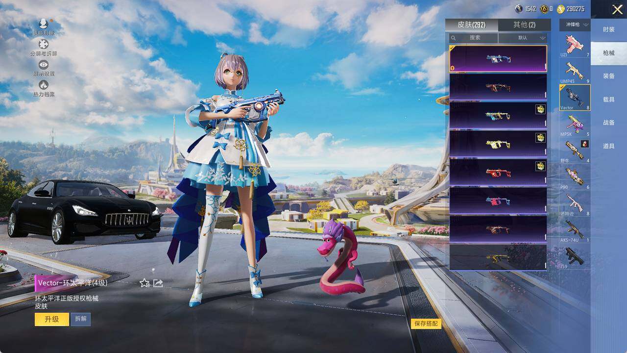 SCAR-L-桃夭倾城,M416-暖熊萌萌,GROZA-旋转彩虹,AUG-超新星,M762-冷魅冰骑,蜜獾-辉耀战甲,UZI-畅跳缤纷,UMP45-恐龙拽拽,Vector-环太平洋,汤姆逊-冰川粉黛,P90-粉樱探戈,P90-沙丘之主,M24-莲影清波,M24-镜域双华,M417-第五大道,MK20-H-海螺星光,M249-猪猪侠,DP-28-暗夜鎏金,MG3-洛神天依,PKM-江南烟雨,平底锅-仲夏莫吉托