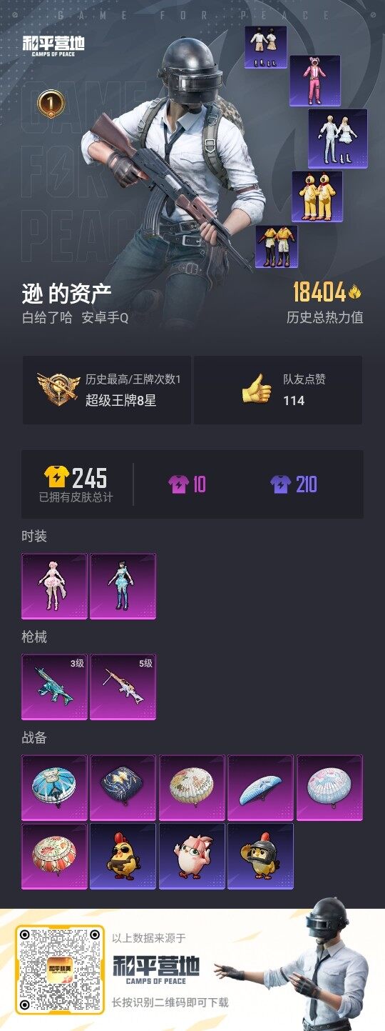 - [11492329]5粉装 5特效枪 1载具 8印记 可二次 可修改实名 优质装备:迈凯伦塞纳(冷萃蓝),M416五爪金龙,梦幻火箭(新101)(新火箭少女101粉色套装),缤纷油彩(猪妹猪脸妹),AKM星际浪客,七级M416-五爪金龙,雪月幻音,Vector-最终圣卫者,Kar98K-巳巳如意 热门装扮:心之回忆,猪猪侠,深海小丑鱼,绿野极光,银碳小老虎 稀有枪皮:DP-28-豹影疾电 六级特效枪:六级AKM-星际浪客 五级特效枪:五级Kar98K-巳巳如意 四级特效枪:四级DP-28-豹影疾电 三级特效枪:三级Vector-最终圣卫者 紫色装扮:田园牧歌,轻风白浪,SS22特训,飞狐塔尔斯,SS23特训,幻彩翩翩,妙红点点,娇憨猪猪,夏雨游龙,萌趣咩咩,SS21特训,熠彩粉晶,SS31特训套装,人气偶像,冷焰舞者,霓虹热舞,旭日情侣,SS30特训套装,云朵鹅,雪绒豹,SS33特训套装,顶瓜瓜,飞驰魅影,音速流光,SS19特训,异彩先驱,SS18特训,长空猛禽,霓虹极客,缤纷果语,蓝彩潮人,街头潮人,超能勇士,黄色伏地魔,黑色伏地魔,龙的传人,龙魂突击队,柠萌假日,海岛探路者,夏日音浪,幻世战舞者,湖蓝色名流,绮丽涂鸦,疯狂小兔子,白色伏地魔,空投萌叽,糯粉咩咩,红色运动,炫蓝之夏,雏菊兔兔,萝兰蝴蝶,SS29特训,狂花道·娜可露露,星途旅人,纯真浪花,热情海星,异域银装,鱼渊荷华,燕燕于飞,巳巳如意,青团波波,糖糖葫芦,竞技名士,摩登魅猫,银尘,惊鸿侠骨,SS24特训(SS24特训套装),SS25特训,绝对偶像,锦衣飞扬,SS27特训,无暇誓言,小丑鱼,智谋强哥,大橘大利,蓝冰羽,紫幽梦,SS32特训服(SS32特训套装),糯粉咪咪(套装-糯粉咩咩),青玉碎影,绯格组合,萌黄之夏,白糯汤圆,蜜桃派对,恋语绒绒,光之冒险 优质战备:星梦奇缘降落伞,拳皇·狂花道降落伞,星途旅人降落伞,恐龙拽拽降落伞,千金淑猫降落伞,幻彩电音降落伞,智耀战神降落伞,樱桃泡泡降落伞,月下星之子降落伞,纯梦嫁纱降落伞,梦幻火箭降落伞,梦幻火箭飞行器,流星咚咚降落伞