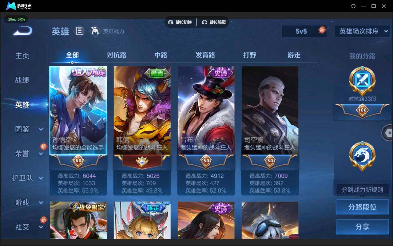 - [12026007]V6 5传说 124英雄 176皮肤 可修改实名 优质装备:地狱火,零号·赤焰,涂山容容 传说皮:云诺千山 珍宝阁皮:优雅恋人,蔷薇恋人 限定皮:逐霄战戟,鸣野蒿,至尊宝,魔法小厨娘,高山流水,怒海麟威,五谷丰年,游园惊梦,李小龙,逐梦之影,孙行者,大圣娶亲,引擎之心,美猴王 史诗皮:苍鳞隐世,化蝶舞,龙之律动,石田雨龙,琥珀纪元伽罗,特工魅影,江河有灵,雪夜绮愿(周瑜),百解令(蒙犽),冰冠公主,时之恋人-孙尚香,天才门将,功夫厨神,德古拉伯爵,幽灵船长,鬼剑武藏,纤云弄巧,拒霜思,缤纷独角兽,乘风破浪,圣诞狂欢,圣诞恋歌,鹰眼统帅,魅力维加斯,无心