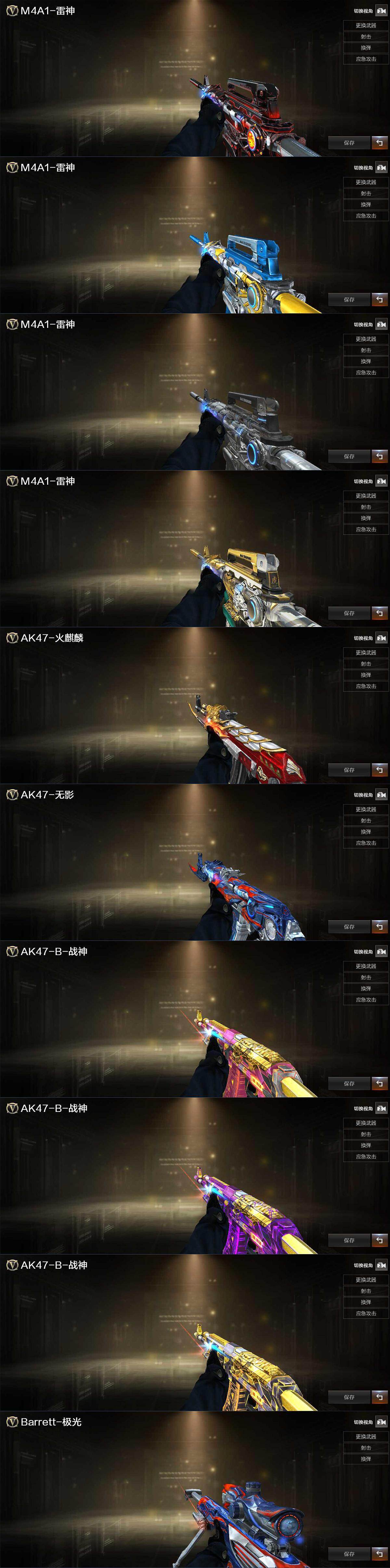 【音效卡】:AK47-火麒麟音效卡,M4A1-雷神音效卡,Barrett-毁灭音效卡