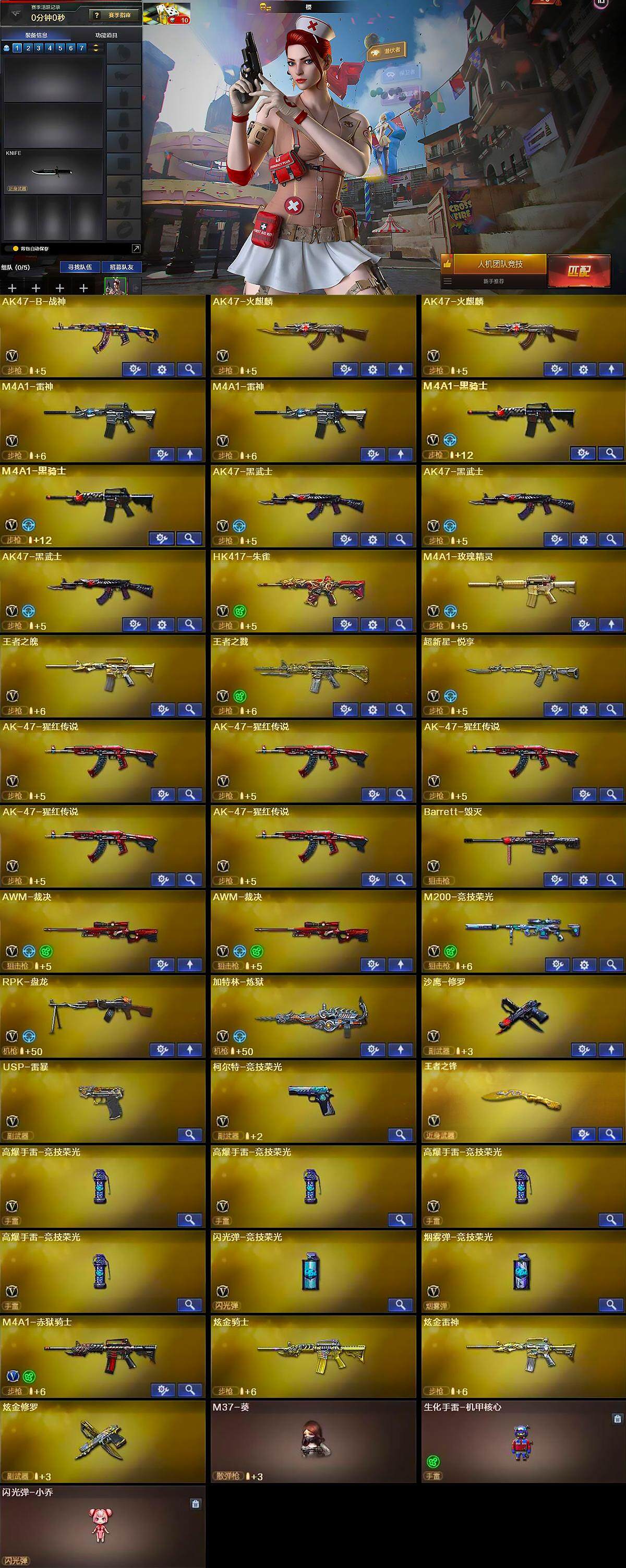 【热门武器】:HK417-朱雀,M200-竞技荣光,M4A1-黑骑士*2,RPK-盘龙,加特林-炼狱,USP-雷暴,沙鹰-修罗
