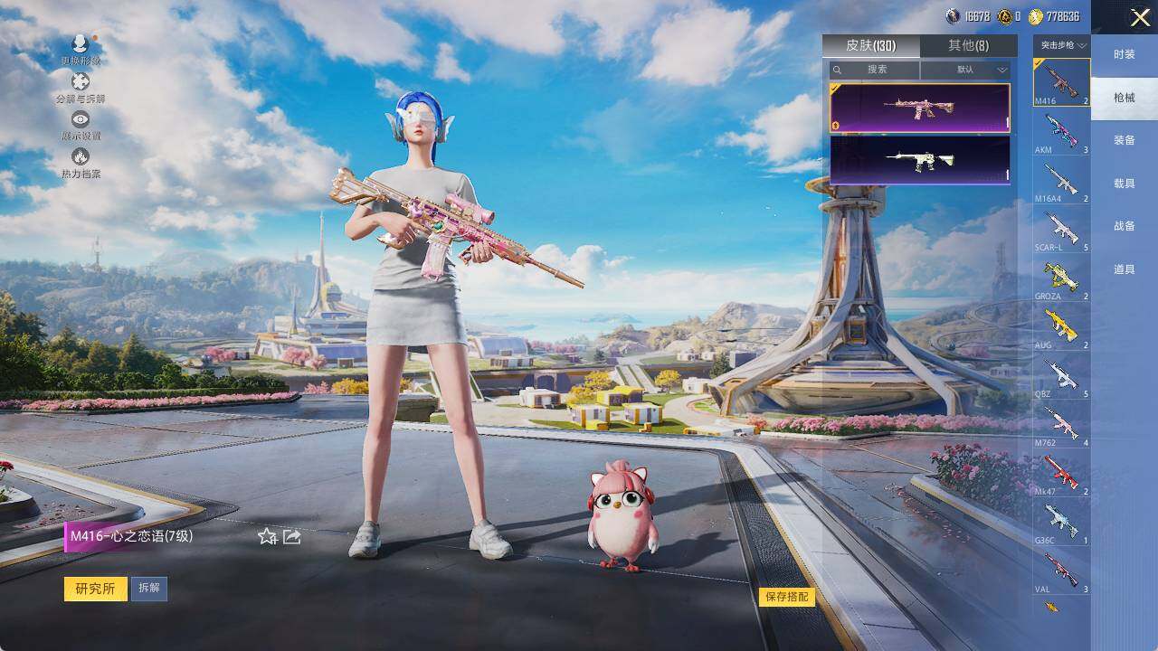 AKM-梦之光华,SCAR-L-纯梦嫁纱,M416-心之恋语,Kar98K-巳巳如意,MG3-酷泡奶龙