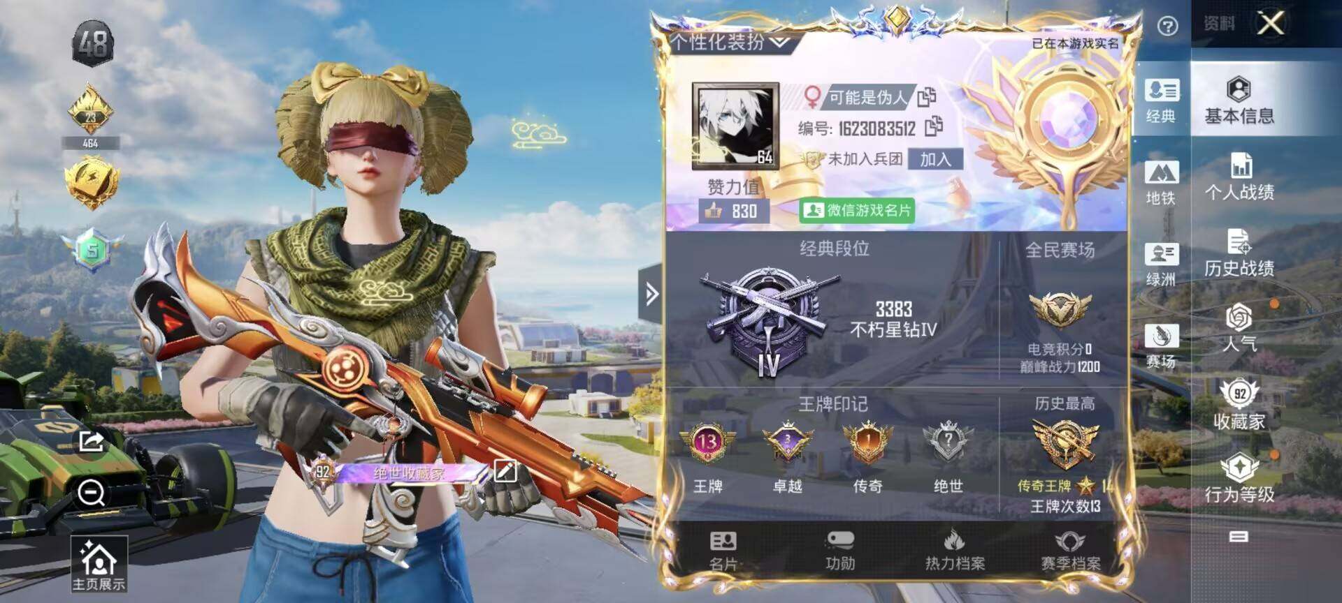 - PX_2106313-苹果QQ 历史总热力值:103544 粉装数量:17 特效枪数量:6 王牌印记:9 历史最高段位:超级王牌8星 套装数量:237 时装数量:874 枪械数量:272 战备数量:201 装备数量:350 时装:套装-创世·救赎,套装-天使彩虹糖,套装-天禅智恒,套装-宝贝奶油派,套装-新星烈龙,套装-暗翼战神,套装-极致幻想,套装-梦幻火箭,套装-潮汐统领,套装-王牌四分卫,套