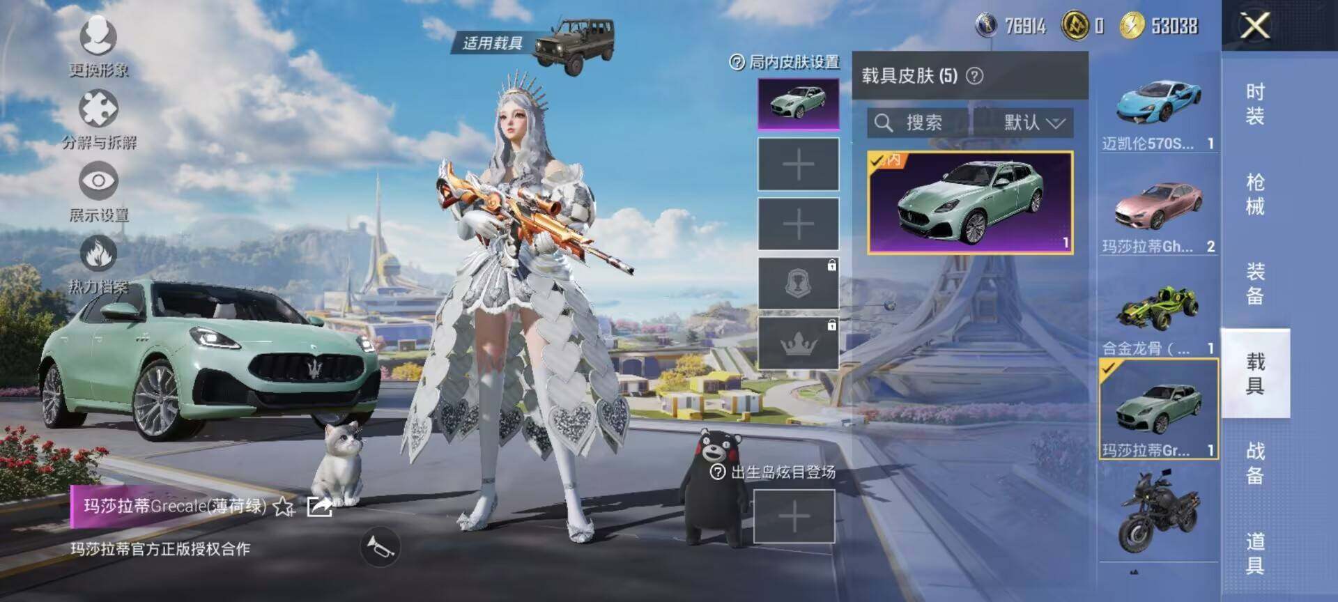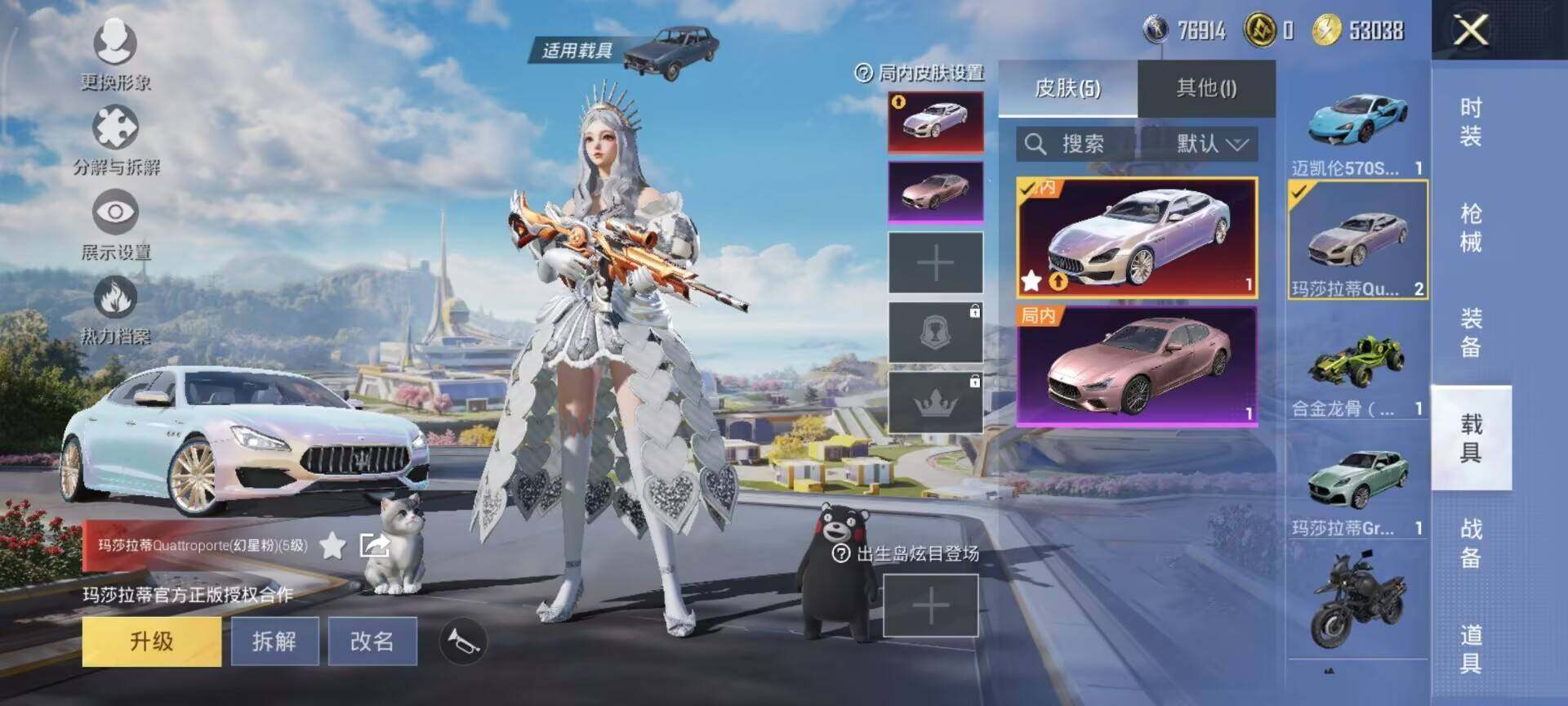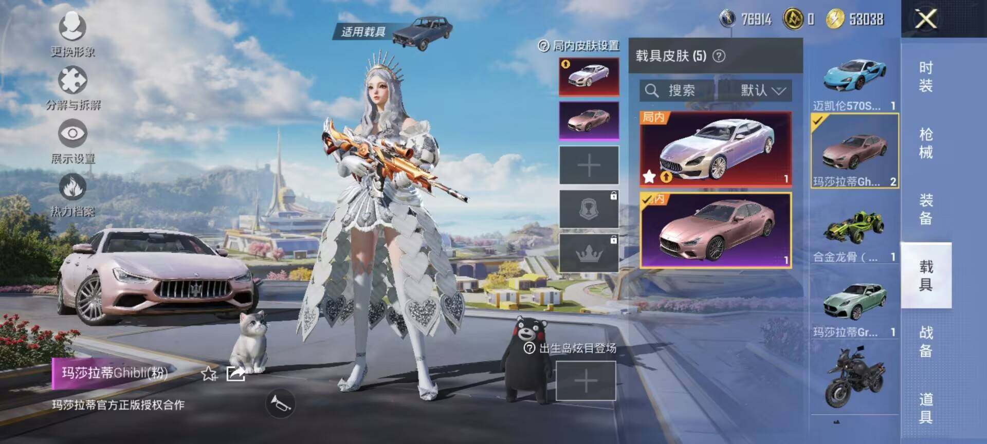 【粉色载具】:玛莎拉蒂Quattroporte(幻星粉),玛莎拉蒂Ghibli(粉),玛莎拉蒂Grecale(薄荷绿),迈凯伦570S(天际蓝),合金龙骨(绿)