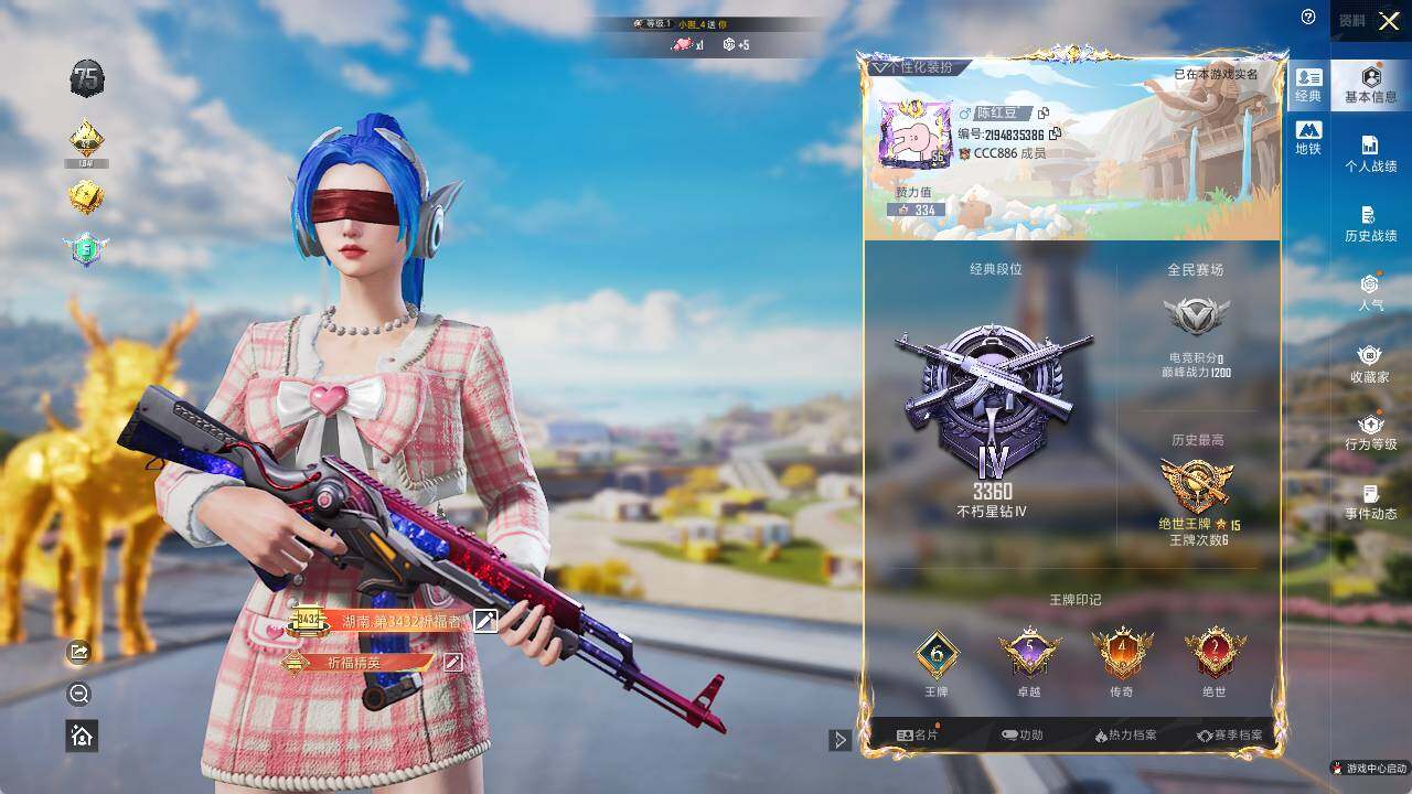 - [12025505]9粉装 8特效枪 16印记 可二次 可修改实名 身法装备:舞王派对(派对舞王、小金鞋) 优质装备:舞王派对(派对舞王、小金鞋),M416五爪金龙,奇异狩猎者,幻影战神,深渊皇后,M416风花雪月,七级M416-风花雪月,GROZA-镜光银凌,AUG-暖羊咩咩,智耀战神,AMR-智耀战神,MK14-甜梦熊击,时光之誓,羊梦糖心,Kar98K-巳巳如意 热门装扮:鸾凤武仙,未来歌姬,闲梦青缨,烟云彩露,派对舞王(小金鞋) 稀有枪皮:DP-28-豹影疾电 六级特效枪:六级AMR-智耀战神 五级特效枪:五级GROZA-镜光银凌,五级Kar98K-巳巳如意,五级DP-28-豹影疾电,五级MK14-甜梦熊击,五级AUG-暖羊咩咩 四级特效枪:四级M416-五爪金龙 紫色装扮:SS22特训,SS23特训,娇憨猪猪,暖心橘喵,萌趣咩咩,暖心熊熊,SS21特训,SS31特训套装,SS2特训,SS3特训,SS5特训,人气偶像,冰川特警,冷焰舞者,凛冬战士,北国孤狼,旭日情侣,极速光影,SS30特训套装,云朵鹅,彩虹兔,雪绒豹,SS33特训套装,青涩时光,顶瓜瓜,SS20特训,SS15特训,双棍侠客,时空追击者,暴风机械师,SS16特训,SS13特训,星梦畅游,SS14特训,萌趣颜团子,特种颜团子,SS19特训,英勇保护者,竞技角斗士,吉莉礼服,甜心亚梦,虚音幻奏,瑞龙福将,团圆交子,SS17特训,SS18特训,都市漫游者,都市魅力,酒红色名流,野性战心,野性战魂,金鼠迎春,长空猛禽,雪山征服者,雪山精英,霓虹街区,青年教官,迎春赐吉,风暴特警,缤纷果语,耀眼新星,荧惑魅影,蓝彩潮人,蓝色守护者,蓝色运动,虎虎生威吉莉,街头潮人,超能勇士,跃动心情,风行保卫者,骑行爱好者,魅力单车,鹤鸣,麻辣教官,黄色伏地魔,黄色名流,黄色运动,黎明保卫者,黑色伏地魔,龙的传人,龟仙人,冰河战士,龙魂突击队,蝶变,香桃花海,和平特警,极速红龙,柠萌假日,橘黑制服,沙漠兵团,沙漠雄狮,海岛探路者,涂山之恋,深蓝色名流,暗黑骑手,幻影武者,圣诞大吉,娴静芝兰,夏日音浪,夜莺强袭者,完美偶像,帅气教官,幻世战舞者,怒火燎原,战地督导,战地菁英,探宝勇士,湖蓝色名流,绮丽涂鸦,疯狂小兔子,白熊同盟,白色伏地魔,破晓战魂,破蛋小黄鸡,神秘领域,甜蜜告白,福星高照,空岛之星,突袭者,竞技勇士朋克,竞技达人朋克,红