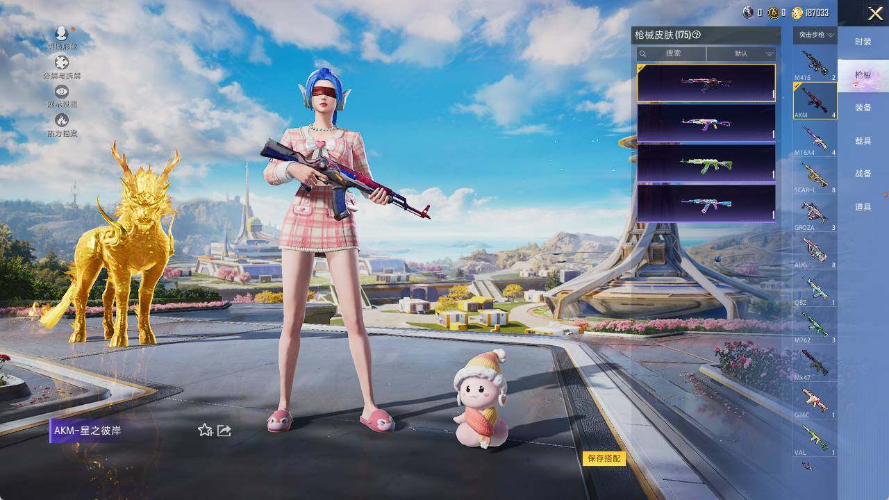 SCAR-L-梦幻火箭,SCAR-L-金蛇镇世,M416-墨龙九天,GROZA-镜光银凌,AUG-超新星,AUG-暖羊咩咩,M762-青锋波束,UMP45-量子极限,Kar98K-巳巳如意,SVD-月影灵韵