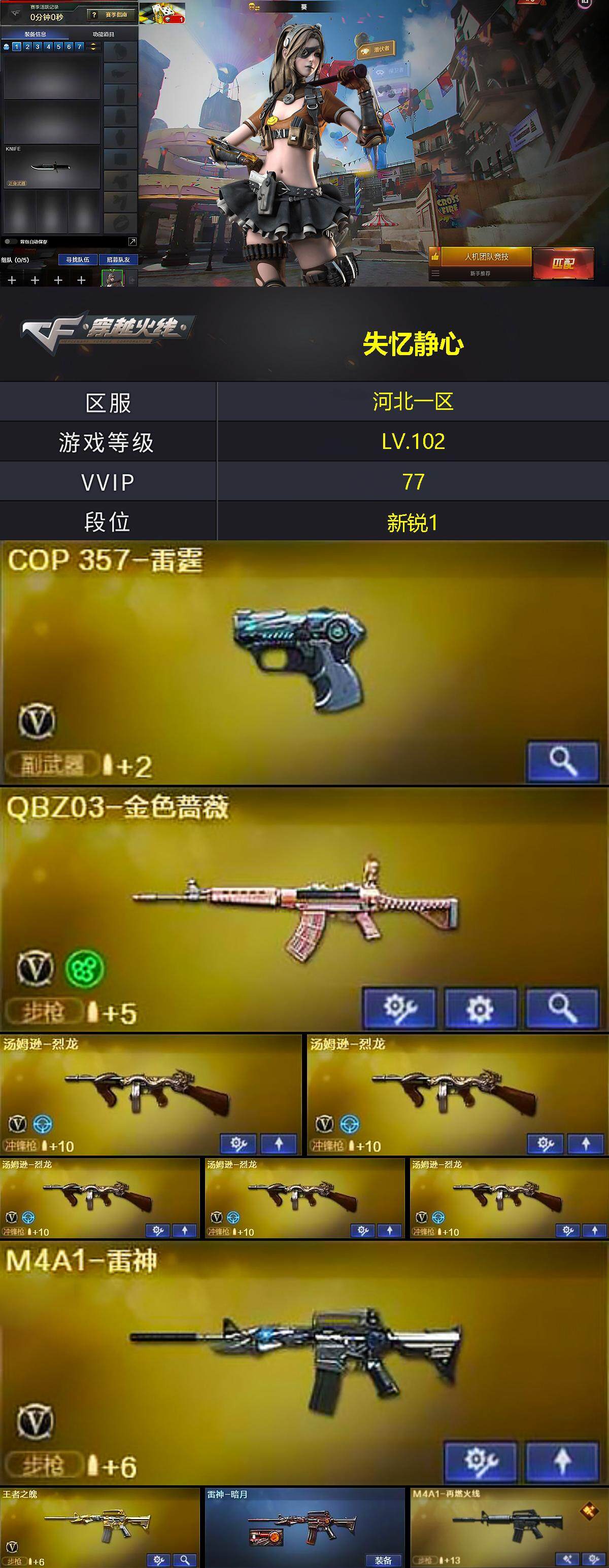 【热门武器】:QBZ03-金色蔷薇,死亡之眼*3,金色小号,M4A1-黑骑士,汤姆逊-烈龙*5,沙鹰-修罗*4